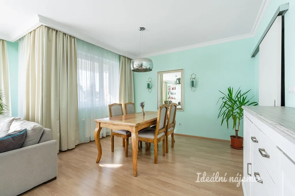Srdcem domova je prostorný obývací pokoj s jídelním koutem, který je již vybaven pohodlnou sedací soupravou a úložnými prostory. Navazuje na něj plně vybavená kuchyňská linka s moderními spotřebiči včetně myčky, mikrovlnné i elektrické trouby. Byt dále nabízí tři samostatné pokoje, které se snadno promění v útulnou ložnici, dětský pokoj nebo klidnou pracovnu. Komfort bydlení podtrhují dvě koupelny – jedna s relaxační vanou a pračkou, druhá se sprchovým koutem a toaletou. K bytu náleží také prostorný balkon, sklep a vlastní parkovací stání, což v této lokalitě představuje obrovskou výhodu.