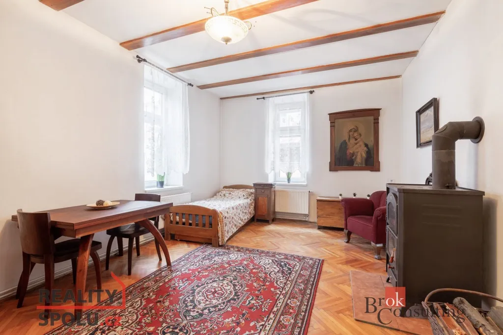 Byt je situován v cihlovém domě s historickým charakterem a vysokými stropy, jako jeden z celkově tří bytů. Interiér dnes naplňuje spíše skromné nároky na bydlení a nabízí skvělou příležitost k modernizaci dle vlastních představ, při níž se bude možné opřít o dobrou statiku domu a historicky kvalitní užité materiály. Elektroinstalace byla kompletně obnovena na měď v roce 2013 a v roce 2020 došlo k výměně rozvaděče. Dům ani v přízemních prostorech netrpí žádnými vlhkostmi.