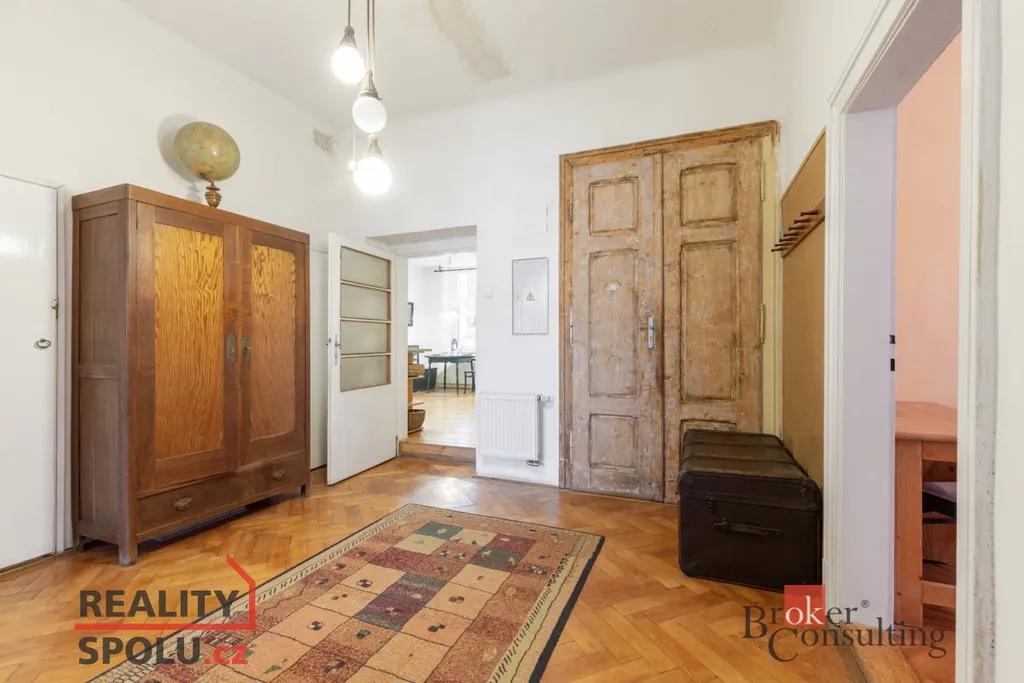 Dispozice 4+1 poskytuje výborné prostorové uspořádání vhodné pro komfortní rodinné bydlení, případně reprezentativní kombinaci bydlení a pracovního zázemí. Součástí bytu je kromě 135 m² užitné plochy také lodžie o výměře přes 4 m². Původní dřevěné podlahy a další autentické prvky dodávají bytu charakter, který je možné citlivou rekonstrukcí zachovat a zároveň propojit s moderním stylem bydlení.