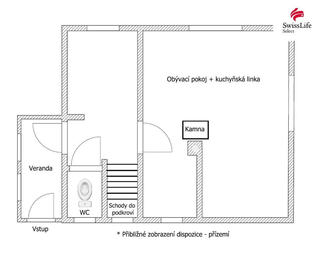 Tato zděná chata má nově opravenou střechu, novou střešní krytinu a nový vnější obklad z borového dřeva ve štítu. Dispozičně se jedná v podstatě o 2+kk s užitnou plochou přibližně 42 m, kdy v přízemí vstoupíte přes novou verandu a přes chodbičku do obývacího prostoru s kamny a kuchyňskou linkou. Z chodby v přízemí, na které je také WC, vede schodiště do podkroví (ložnice). Pod chatou je i sklep pro uskladnění zahradního nářadí.