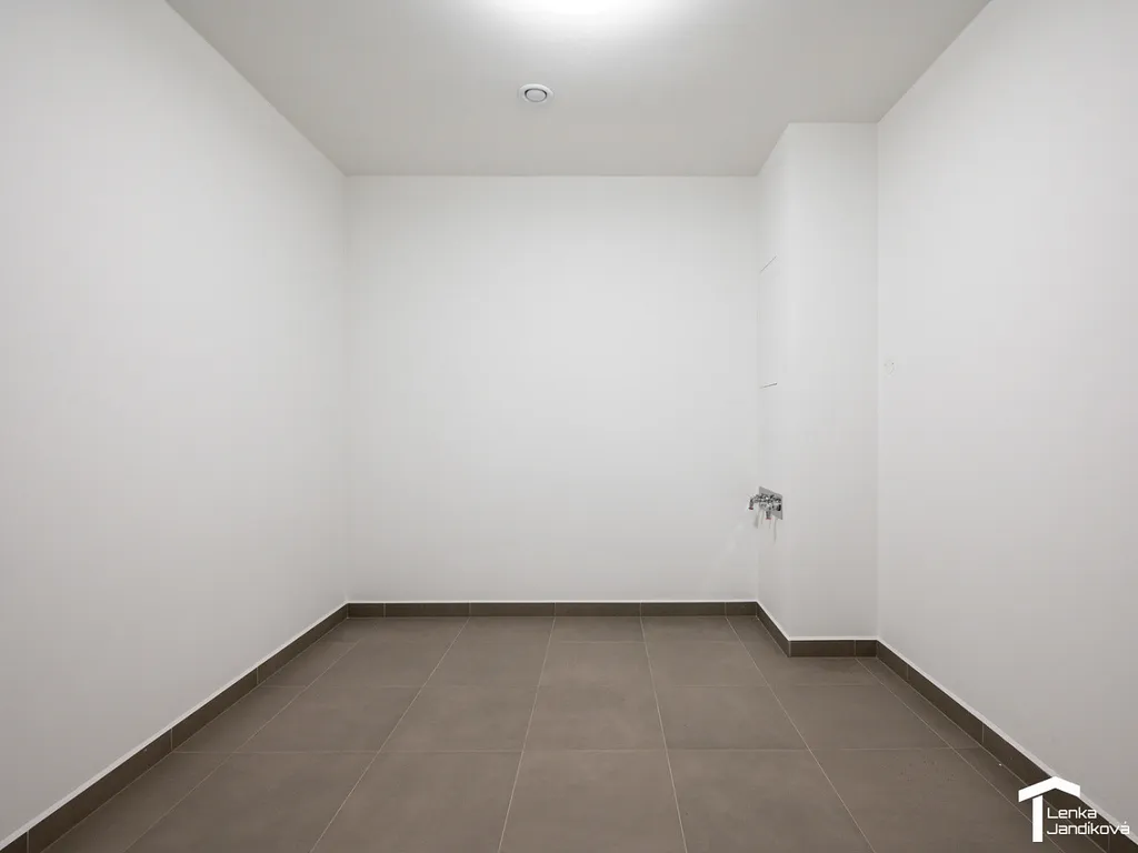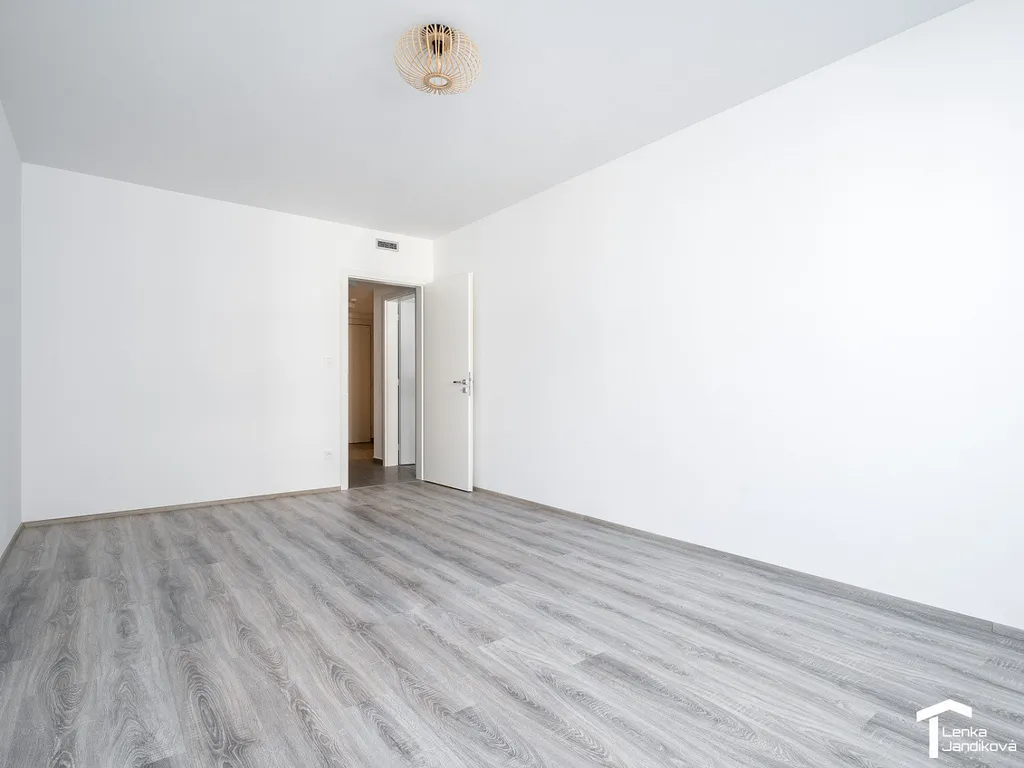Bytová jednotka je velmi dobře dispozičně řešená a kromě velkorysé výměry pokojů je k dispozici v bytě komora, kde je možné umístit pračku, případně sušičku nebo prostor využít jako šatnu. Obývací pokoj je spojený s kuchyňským koutem, který je osazený linkou na míru, včetně vestavěných spotřebičů: elektrická trouba, varná deska, myčka, mikrovlnná trouba, digestoř a dále volně stojící lednice s mrazákem. Koupelna je osazena vanou a je oddělená od WC. Z obývacího pokoje vejdeme na balón, který je situovaný do vnitrobloku domu. V oknech je nainstalováno plisé a sítě proti hmyzu. Vytápění bytu je podlahové a dále je zde řízené větrání rekuperací.