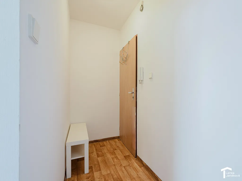 Kuchyňský kout je oddělený od pokoje a je v něm osazena kuchyňská linka a volně stojící sporák. V pokoji je k dispozici šatní skříň. Koupelna je spojená s WC a je zde umístěný sprchový kout. K bytu náleží balkón, který je orientovaný do vnitrobloku domu.