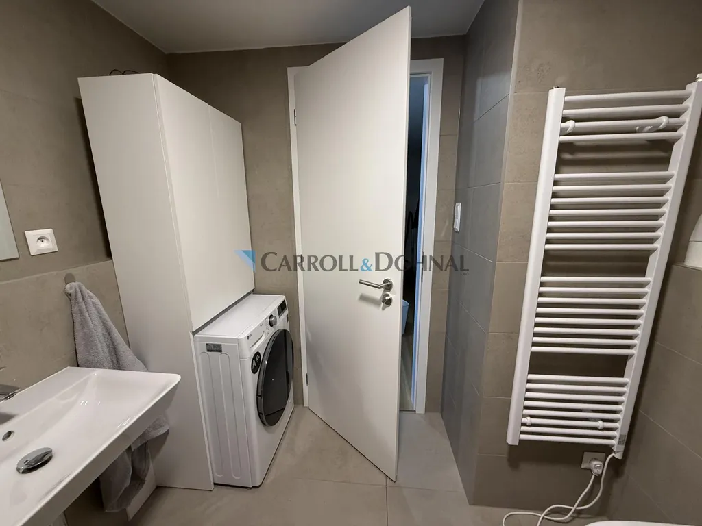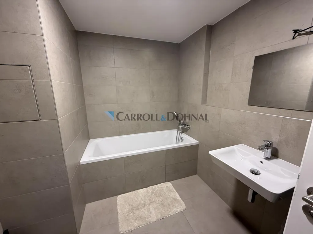 Ložnice s vestavěnou skříní poskytne dostatek úložného prostoru, koupelna s vanou zase příjemné místo k relaxaci po náročném dni. Praktickým bonusem je pračka se sušičkou.