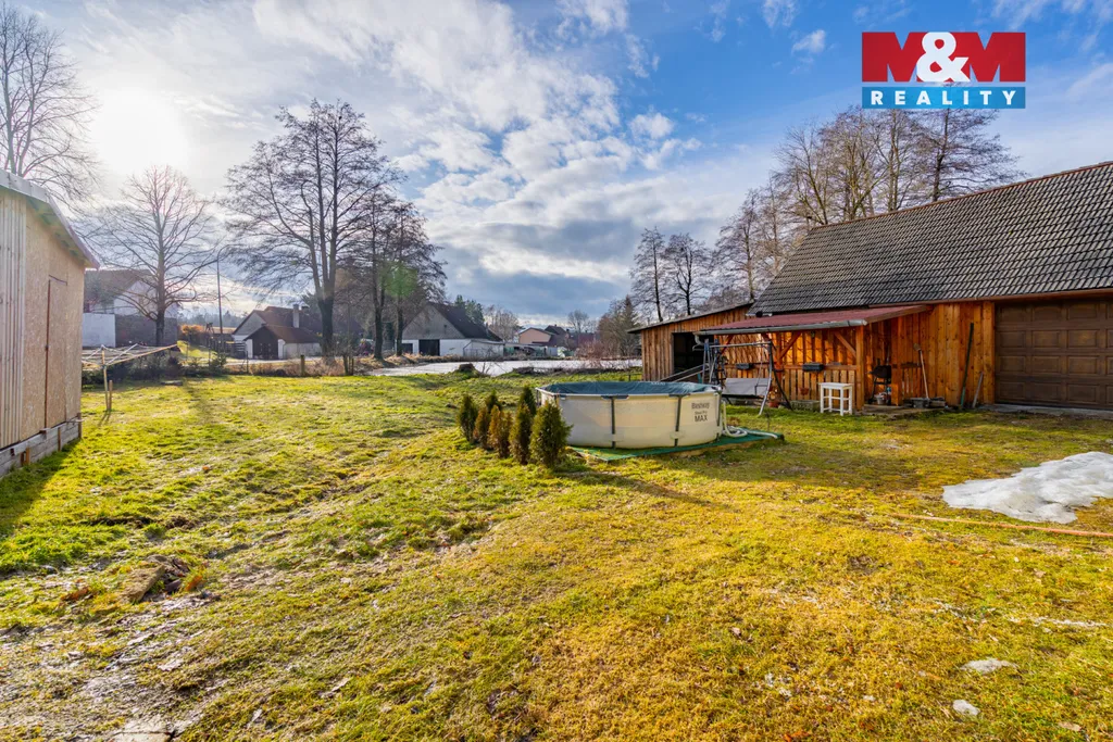 Na pozemku (959 m²) se nachází prostorná stodola s garážovými vraty, pergola pro příjemné posezení s výhledem na sousední rybník. I přes blízkost rybníka je dům mimo záplavovou oblast a nehrozí zde zatopení. Součástí pozemku je zastřešená stavba – kombinace stánku s občerstvením a krytého parkovacího stání. Dům je vhodný jak k trvalému bydlení, tak k rekreaci.
