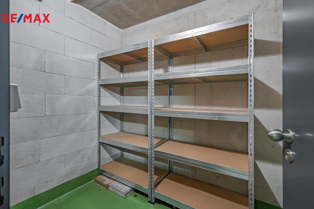 K bytu náleží kryté garážové stání přímo v domě a hned vedle něj se nachází prostorná, zamykatelná sklepní kóje o velikosti cca 4,2 m2. Nový majitel tak získá kompletní zázemí pro pohodlné bydlení bez nutnosti řešit nábytek či spotřebiče — vše je připraveno.