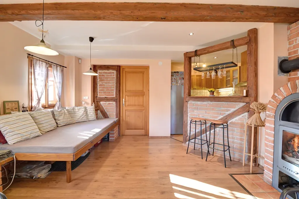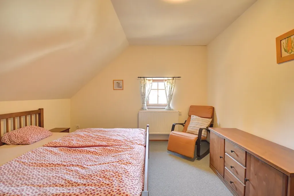 Součástí objektu je také společenská místnost s kuchyní, barem a posezením, která vytváří příjemné zázemí pro hosty a skupinové pobyty.