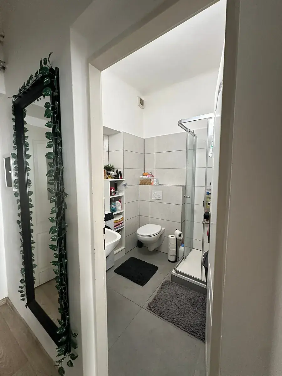 Součástí bytu je koupelna se sprchovým koutem a toaletou. Byt má vlastní elektroměr, elektřina se převádí na nájemníka.