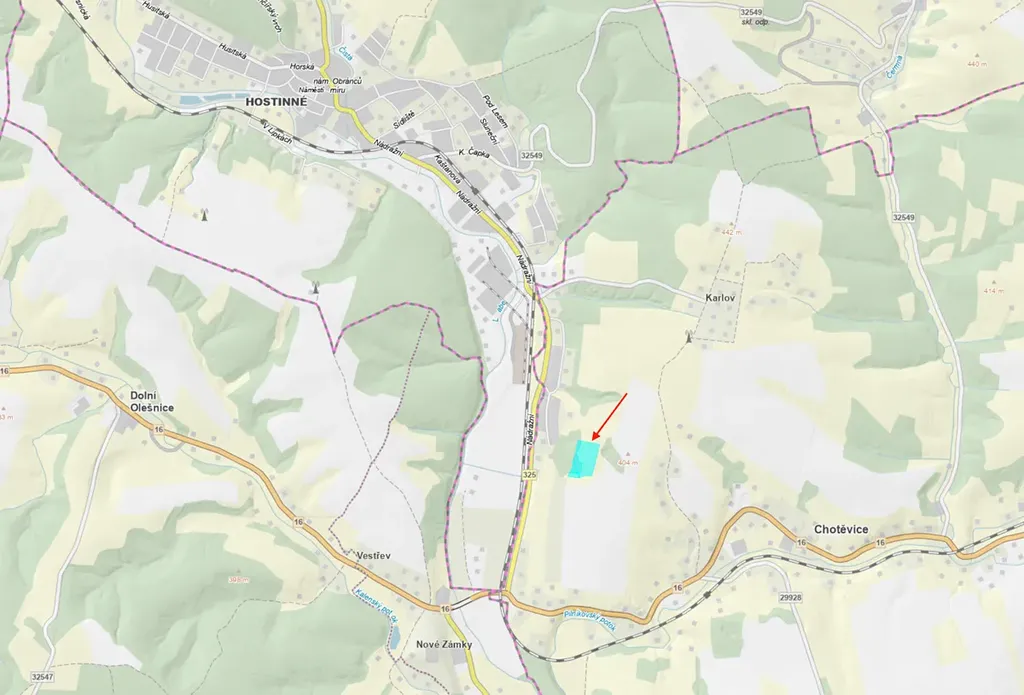 Nabízíme k prodeji louku s okrajem lesa v podhůří Krkonoš. Prodávané parcely číslo 3520, 3521, 3522, 3523, 3524, 3525, 3526 jsou vedené na listu vlastnictví číslo 899 pro katastrální území Chotěvice. Druhem se jedná o trvalý travní porost a lesní část se skládá převážně z bříz a dubů. Více ve výřezu LHO. Celková prodejní výměra činí 24.195 m2.