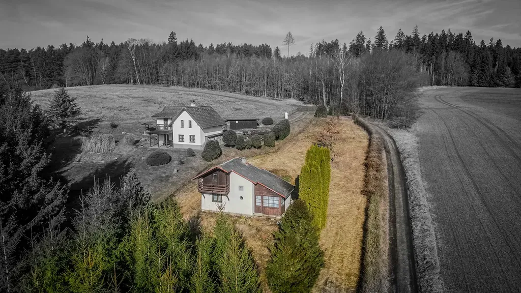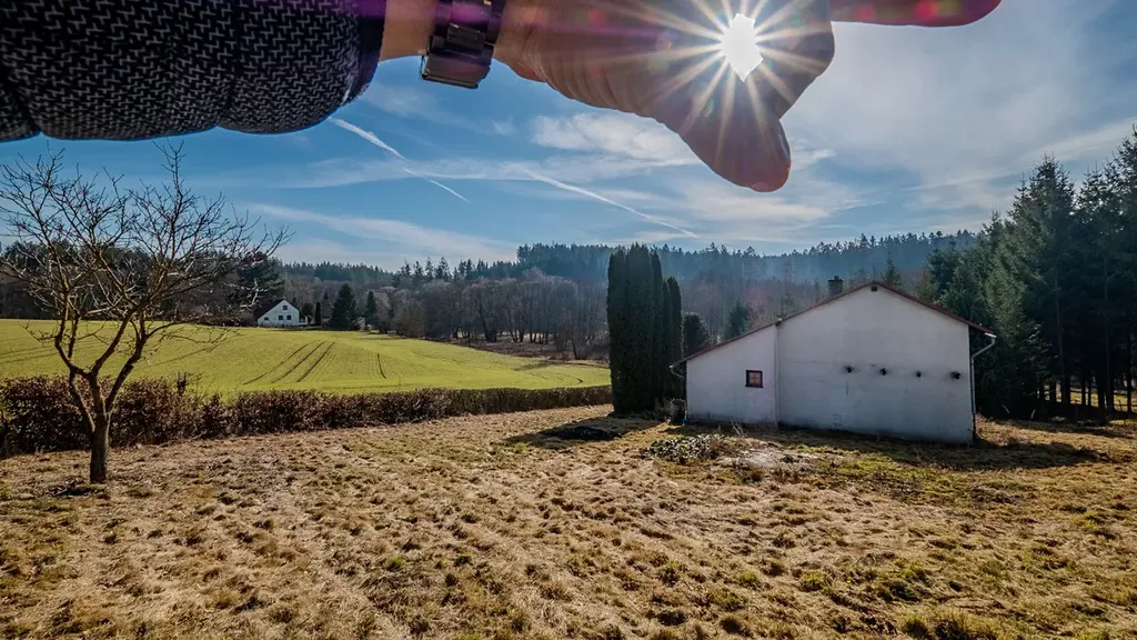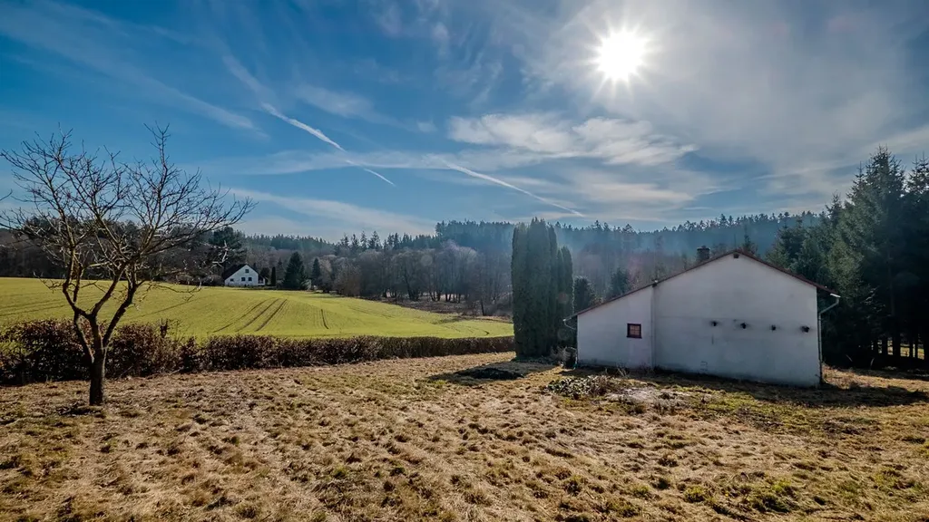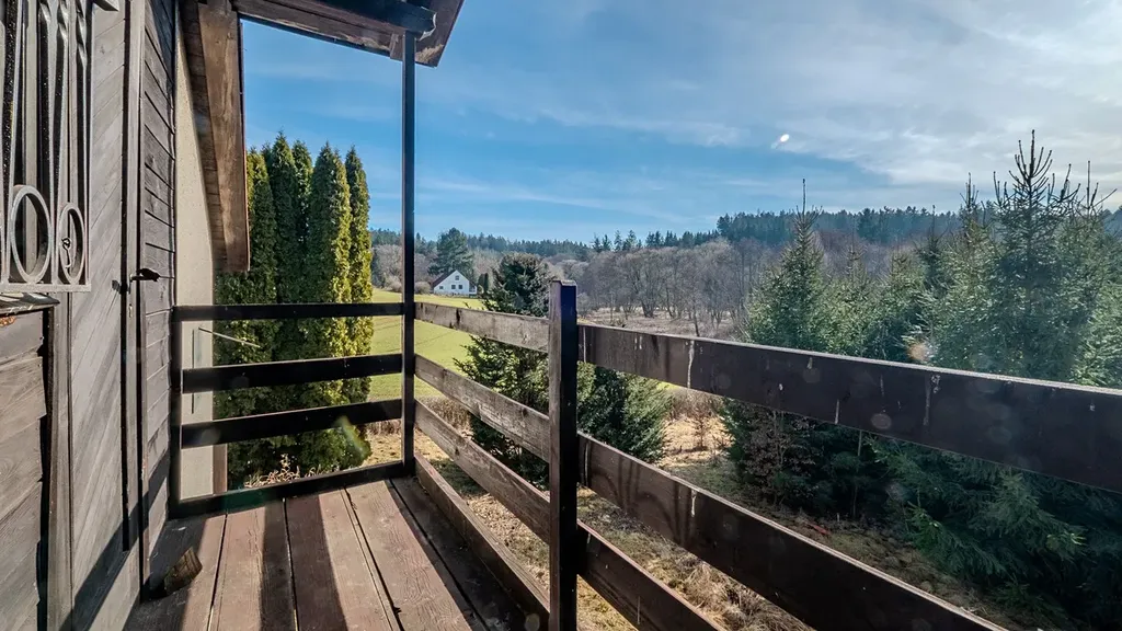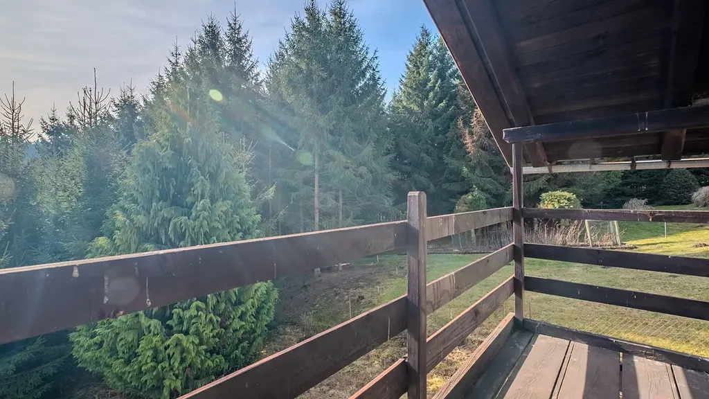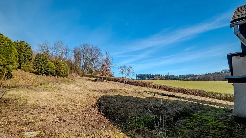 K nemovitosti patří rozlehlý a oplocený pozemek o výměře 1924 m², kde v jižní části máte kousek svého vlastního lesa. Zahrada je mírně svažitá a nabízí obrovský potenciál pro relaxaci, zahradničení nebo prostě jen vychutnání klidu na samotě v přírodě.