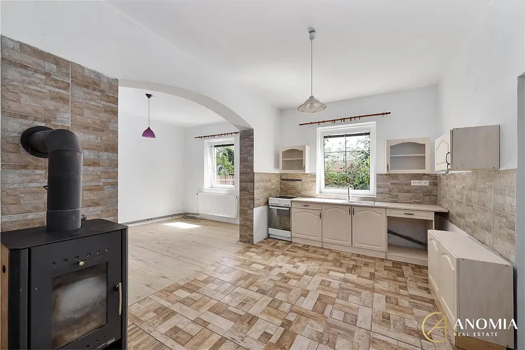 Uvnitř domu najdete dva prostorné obývací pokoje s krbem a kamny, které vytvářejí tu pravou atmosféru domova. Díky výměníku na teplou vodu je navíc dům vytápěn úsporně a efektivně.