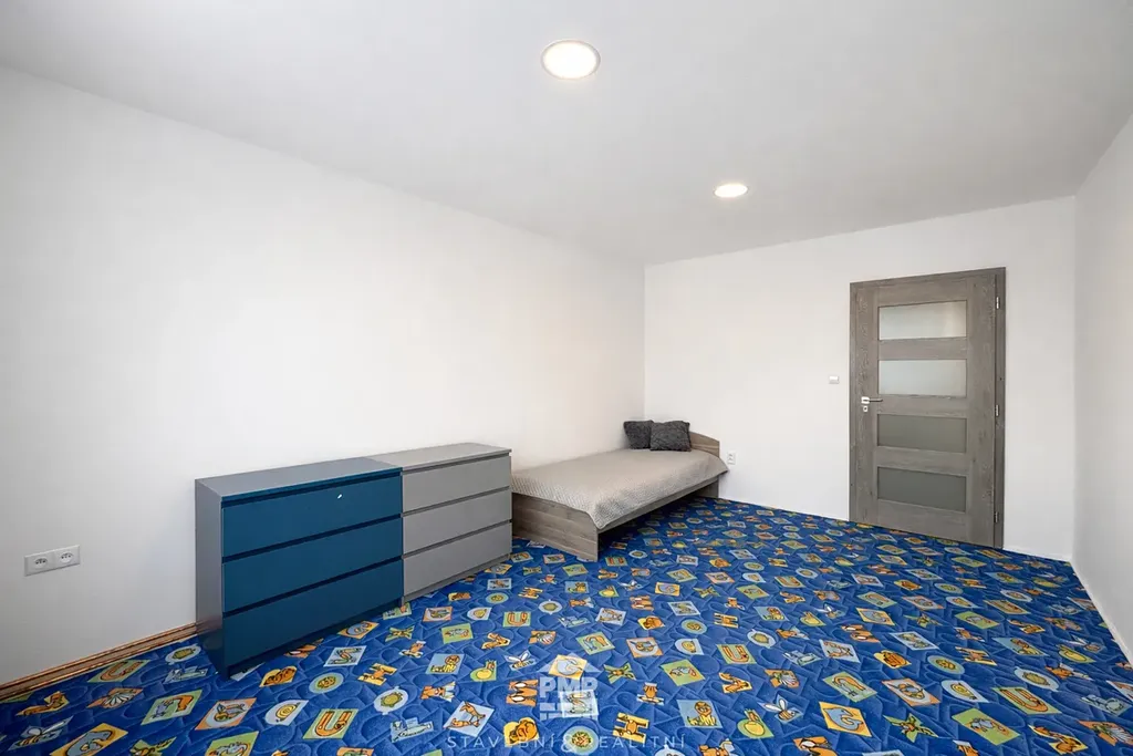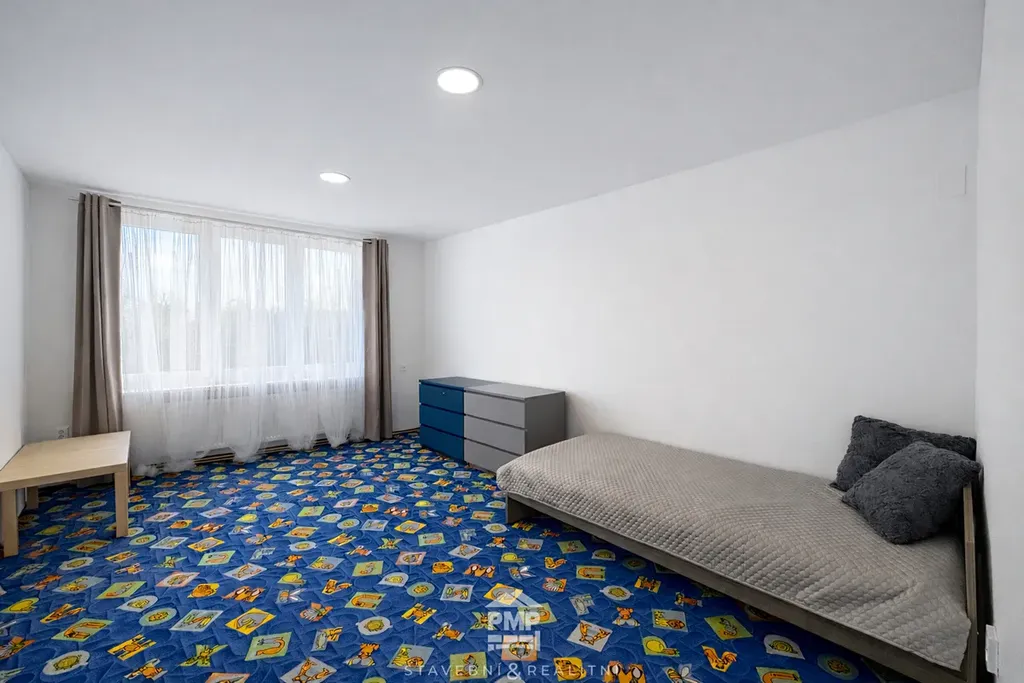Interiér je prakticky řešený a připravený k okamžitému nastěhování. Byt se pronajímá kompletně vybavený - k dispozici jsou postele, šatní skříně, komody, sedací souprava, jídelní stůl se židlemi a TV.