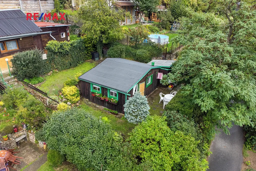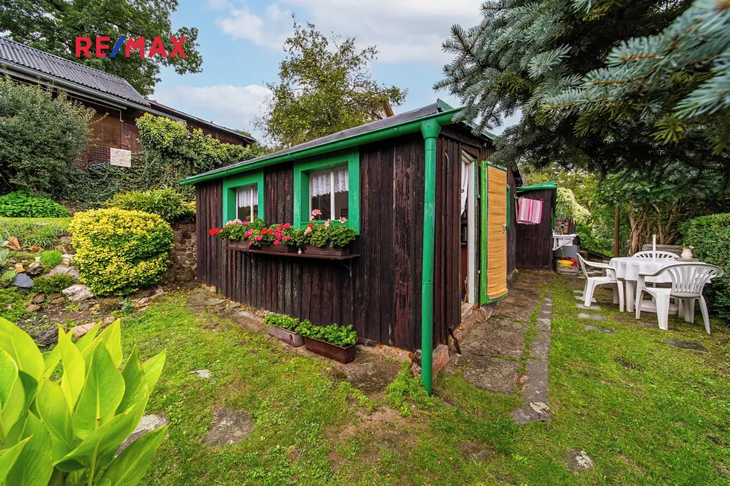 Chata se zahradou se prodává včetně veškerého vybavení a je na vlastním pozemku.