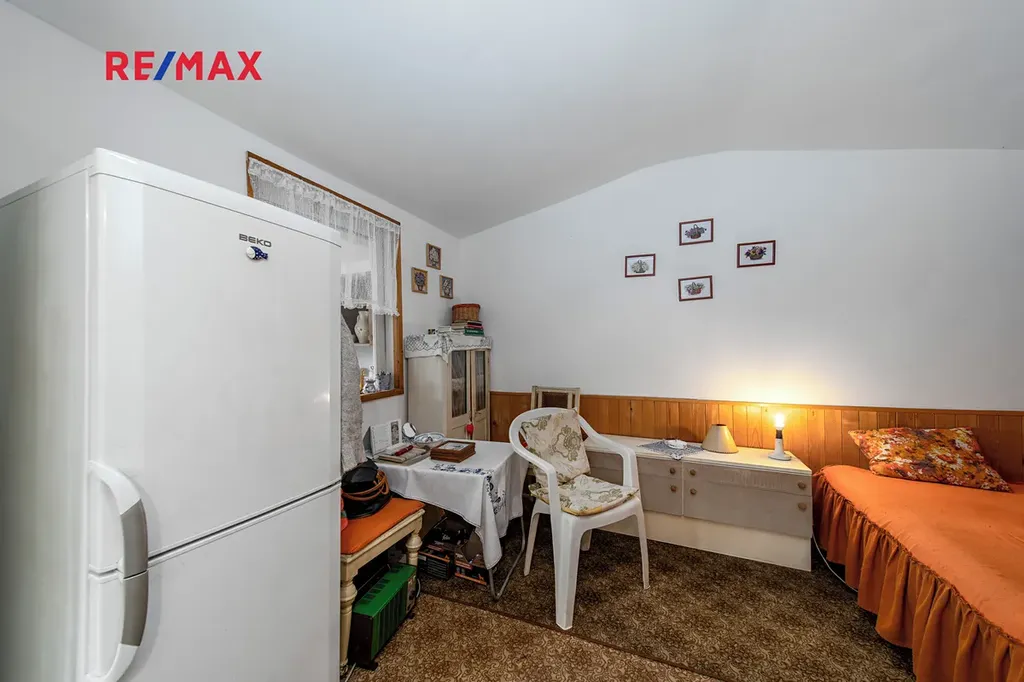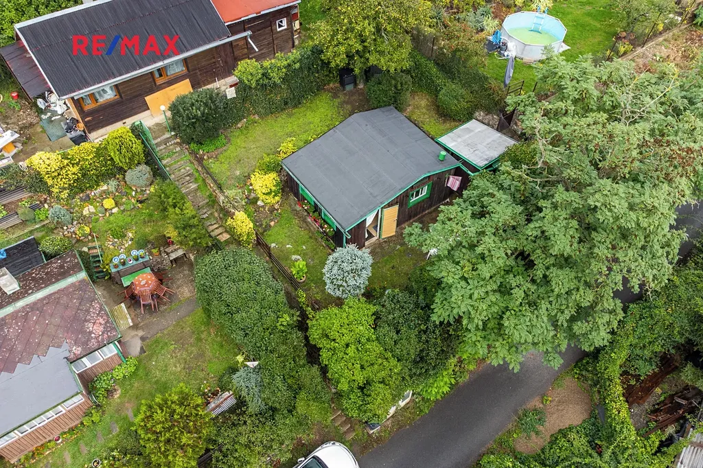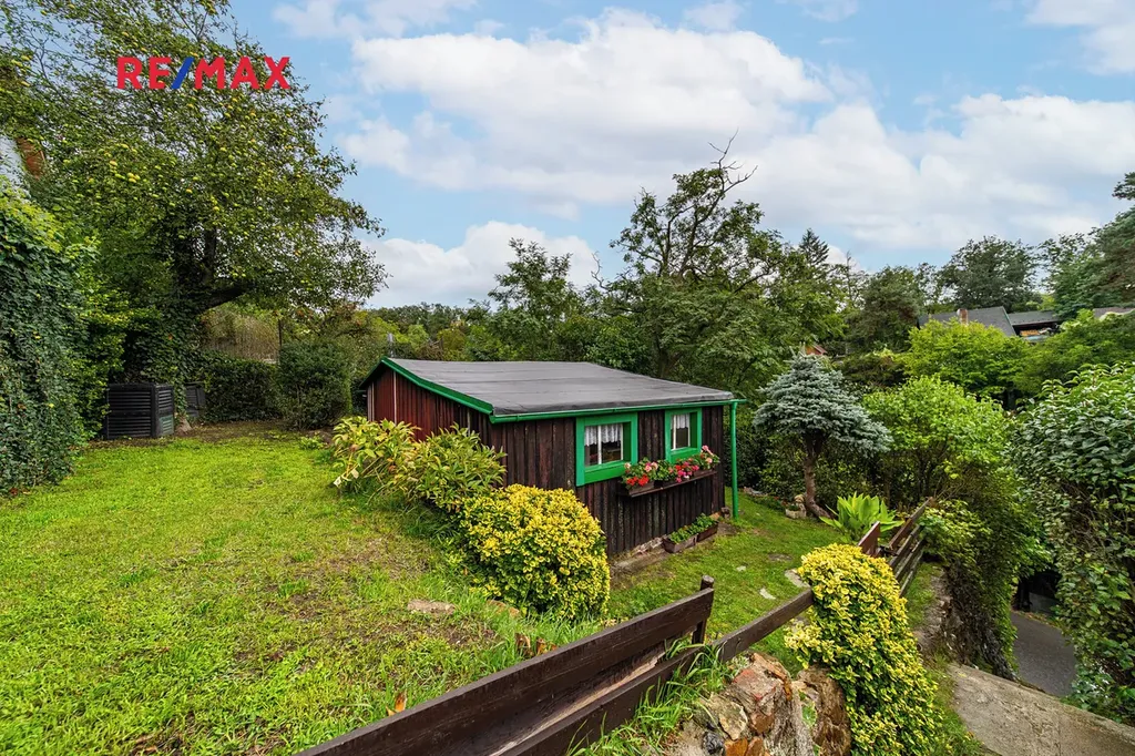 Na pozemku se nachází také praktická kůlna.