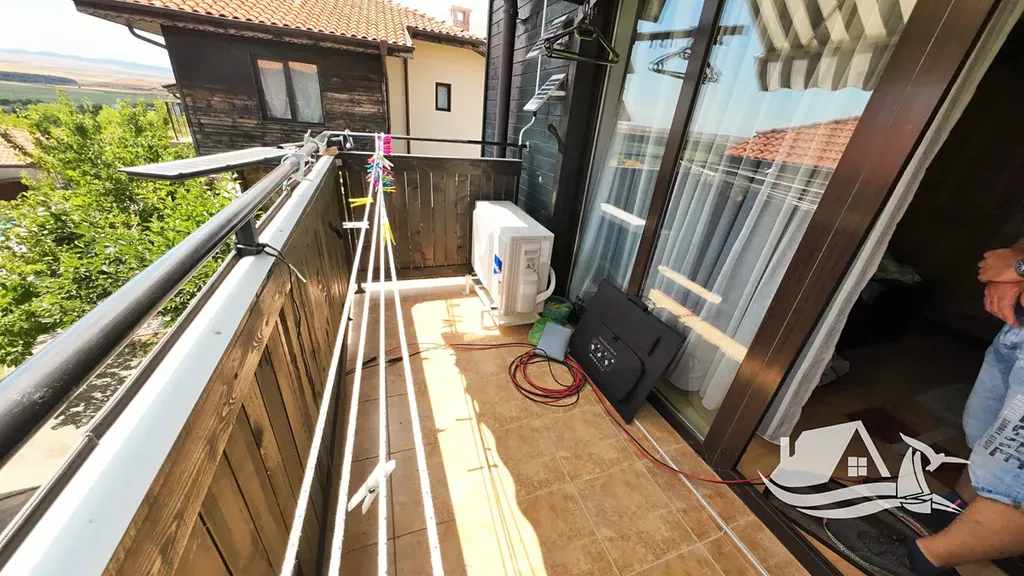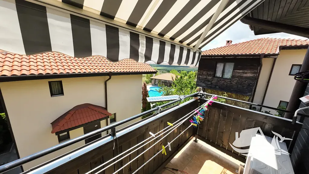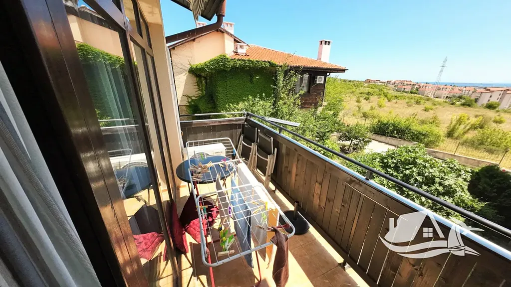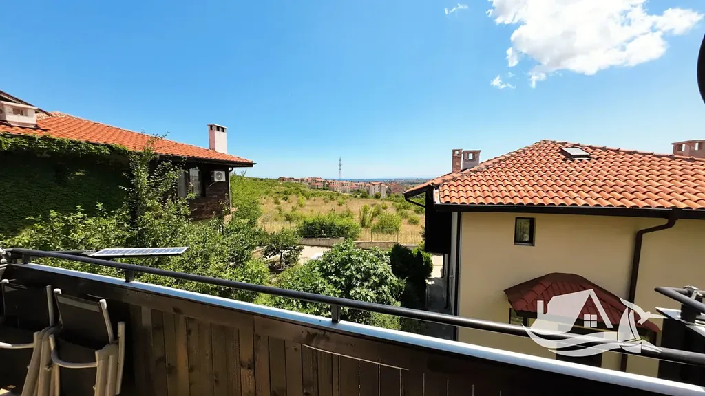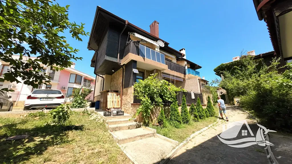 Dům je součástí bezpečného komplexu s bazénem a oplocením, což zajišťuje klid a pohodu. Disponuje třemi místnostmi, dvěma koupelnami a několika balkony, odkud se otevírá výhled na moře a historické centrum Nesebru. K dispozici je parkovací místo přímo u domu.