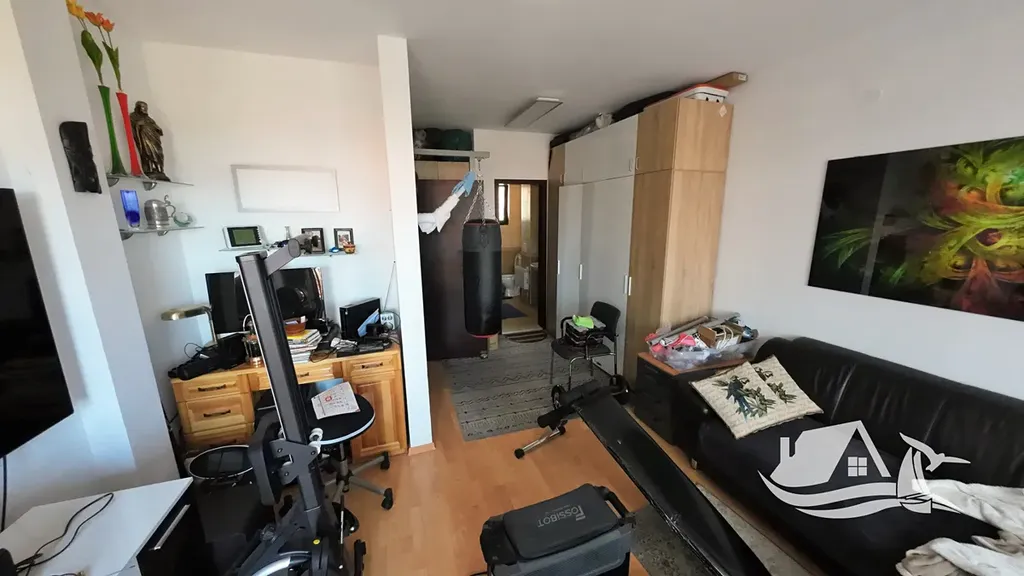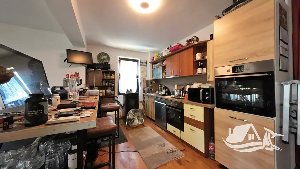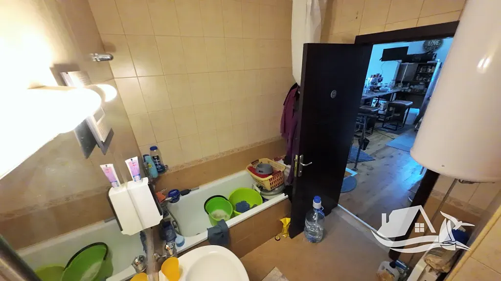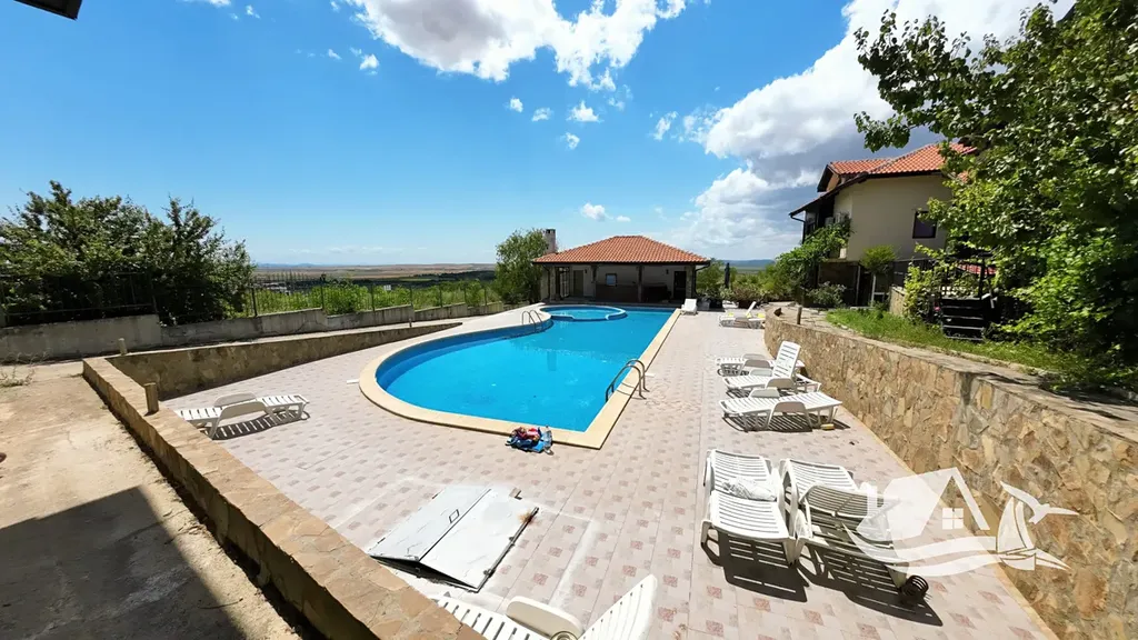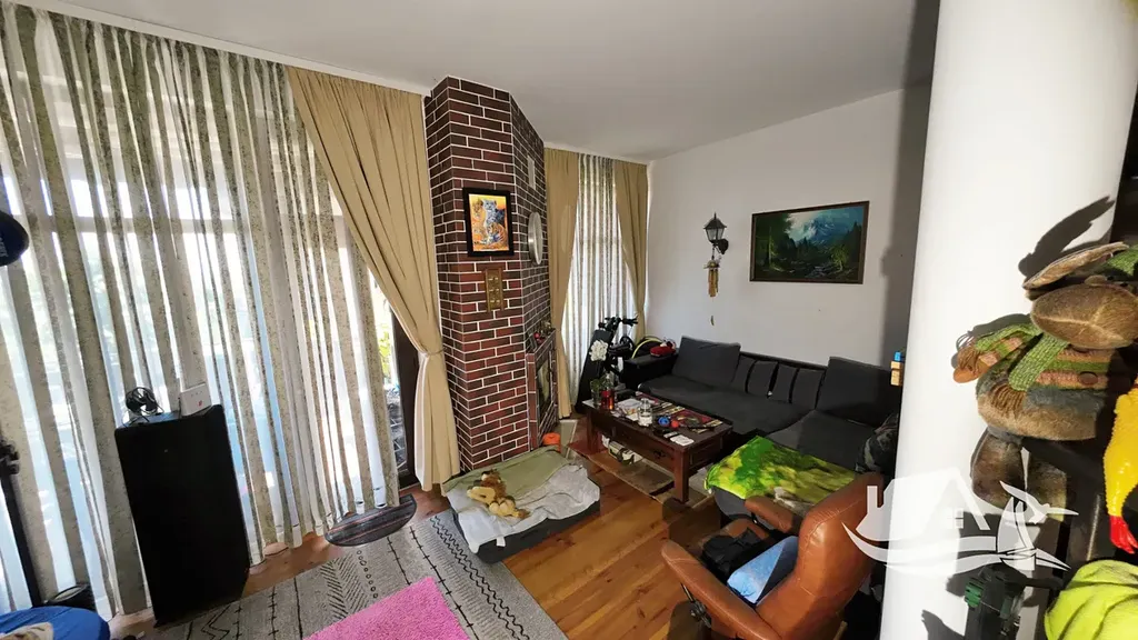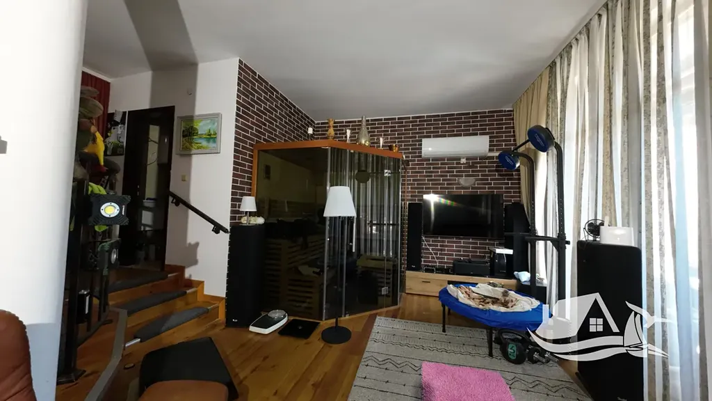 Dům je součástí bezpečného komplexu s bazénem a oplocením, což zajišťuje klid a pohodu. Disponuje třemi místnostmi, dvěma koupelnami a několika balkony, odkud se otevírá výhled na moře a historické centrum Nesebru. K dispozici je parkovací místo přímo u domu.