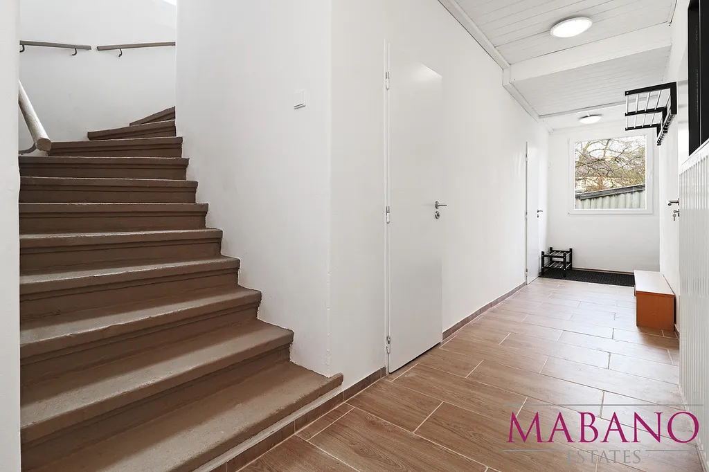 K dispozici je také garáž na motorku či kola a posezení na soukromé zahradě domu.