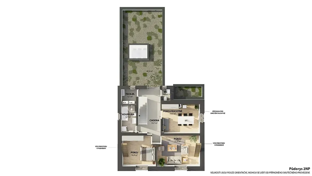 Celý areál byl koncipován jako technologicky ucelený celek s důrazem na funkčnost, preciznost a budoucí rozvoj. Tato filozofie se neomezuje pouze na interiér, ale plynule přechází do exteriéru, kde je již realizován technologicky robustní systém fotovoltaické elektrárny s nadstandardním výkonem, vysokokapacitním bateriovým úložištěm a výkonnou nabíjecí stanicí pro elektromobily. Spolu s efektivním hospodařením s dešťovou vodou a specifickými technickými zapojeními tato systémová připravenost umožňuje budoucímu majiteli nevídanou variabilitu využití každého metru plochy, a to v souladu s nejmodernějšími energetickými i provozními standardy.