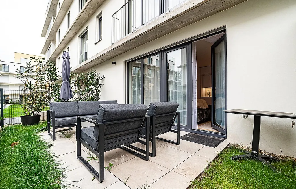 Nabízíme k pronájmu kompletně zařízený, praktický byt (37m²) s prědzahrádkou (23m²) v nově postaveném projektu Golf Resort Hodkovičky. Veškerý nábytek v bytě je vytvořený na zakázku. Součástí bytu jsou venkovní el. žaluzie a zděná sklepní kóje (4m²). Byt je k pronájmu s veškerým vybavením včetně vybavení předzahrádky.V bezprostřední blizkosti bytu je tramvajová zastávka, restaurace, sportovní vyžití i obchod s potravinami.