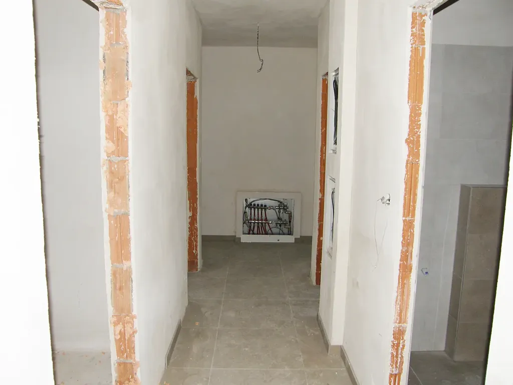 V bytě bude k dispozici obývací pokoj s kuchyňským koutem (29,50 m2), ložnice (11,42 m2), další pokoj (12,38 m2), předsíň (7,53 m2), koupelna s WC (4,50 m2), další samostatné WC (1,88 m2). Dále k bytu náleží zděný sklep (2,11 m2) v 1. podzemním podlaží domu. Byt bude osazen velmi dobrými standardy zařizovacích předmětů.