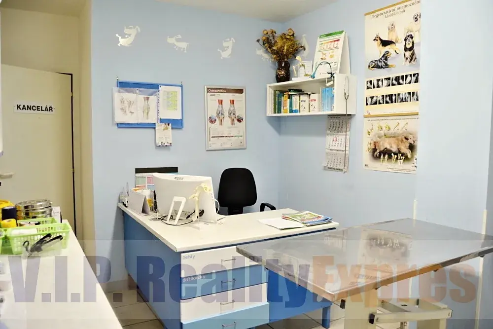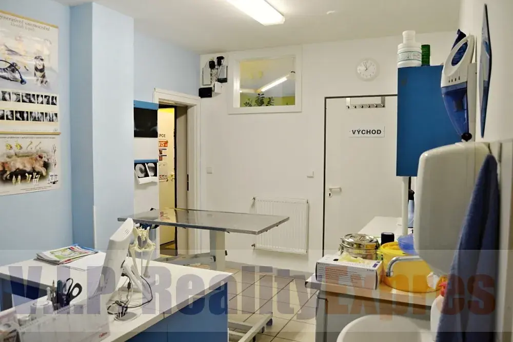 Prodej zavedené a plně funkční veterinární kliniky v přízemí moderního bytového domu na Proseku. Prodává se 100 % podíl zavedené firmy s klientelou, nebytový prostor o ploše 240 m2 a garáž 19 m2. Prostor je rozdělen na tři samostatné části. Veterinární klinika 130 m2 (včetně vybavení a přístrojů), přednášková místnost 63 m2 s kuchyňkou a dvěma samostatnými toaletami a nezařízený prostor 47 m2. Parkování pro klientelu za domem. Samostatná garáž se sousedící chodbou s přístupem do kliniky. Klidná lokalita v zeleni, 5 minut chůze od stanice metra Střížkov. Majitel preferuje prodej veterináři!