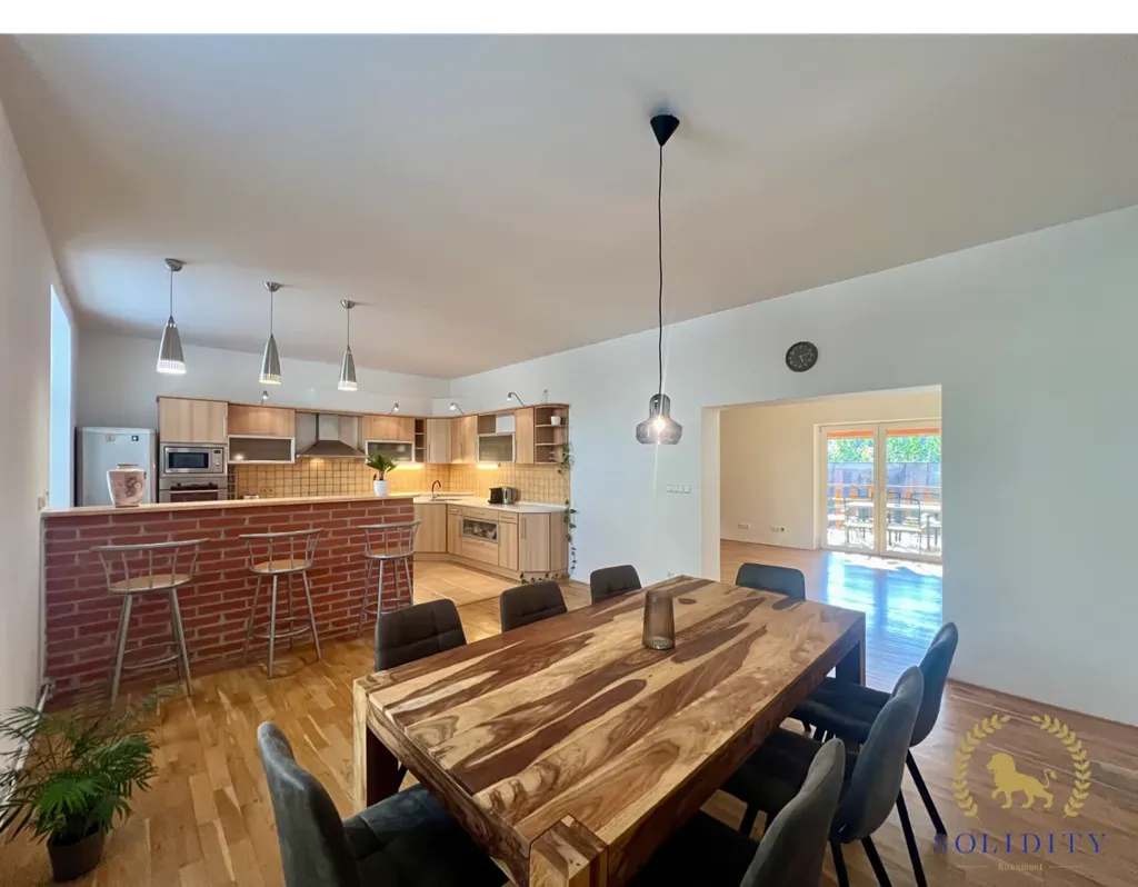 S užitnou plochou 182 m2 a podlahovou plochou 255 m2 je prostor v domě efektivně využitý. Dům je vybaven prostorným sklepem o velikosti 34 m2 a nabízí pohodlné parkování, včetně garáže. I když je plocha zahrady 37 m2, její výhodou je snadná údržba při současném bydlení na prestižní adrese v centru obce. Blízkost veškeré dopravní dostupnosti, jako je vlak, dálnice, silnice, MHD a autobus, zajišťuje rychlý a komfortní přístup k okolním službám a lokacím.
