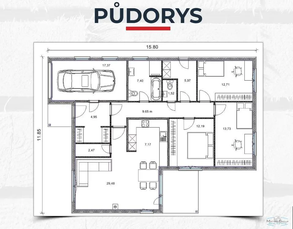 Bungalov 150 je dům střední velikosti vhodný jako samostatně stojící. Je vhodný pro rovinatý, popř. mírně svažitý pozemek. Svými vnitřními prostory uspokojí nároky na bydlení 4-5 členné mladé rodiny. Dům má vhodně oddělenou denní a noční část domu. Ve střeše je možné využít půdního prostoru pro odkládání méně potřebných věcí. Jasné a poměrně jednoduché dispoziční řešení splní nároky investora na kvalitu bydlení.