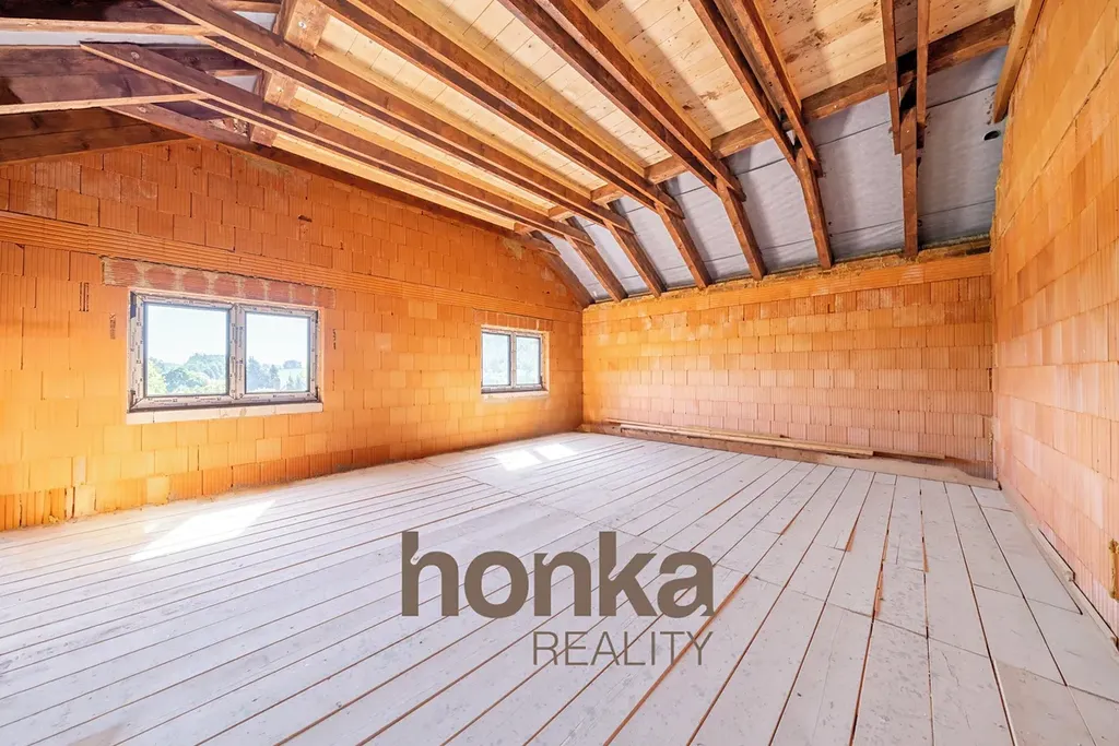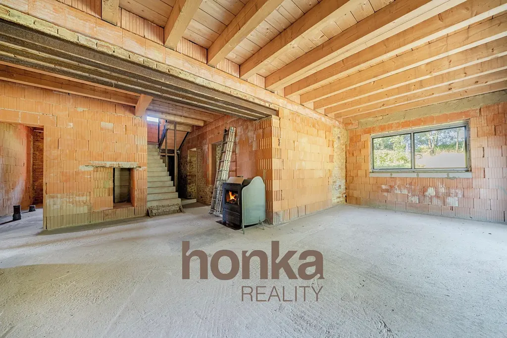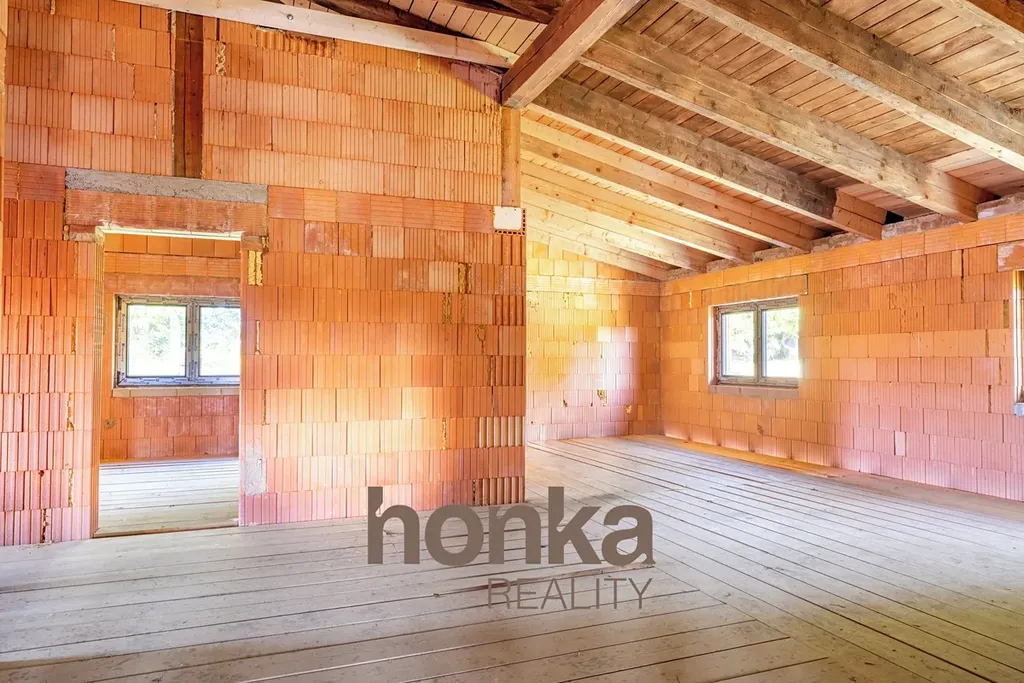 Dům má dvě nadzemní podlaží a sklep o velikosti cca 10 m². Jsou zde již nová plastová okna i hotová střecha. Připraveno k dokončení dle představ budoucích majitelů.