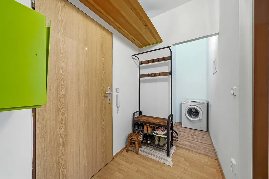 chodba s úložným prostorem, komora, zázemí pro pračku