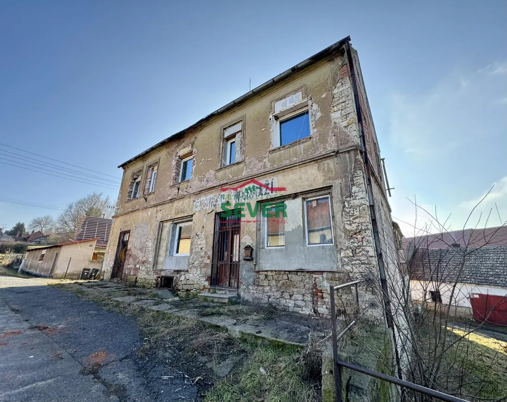 Nemovitosti SEVER vám zprostředkují koupi rodinného domu v obci Domoušice, části Solopysky v okrese Louny. Dům se zastavěnou plochou 200m2 a celkovou plochou včetně pozemku 340m2 je určený k celkové rekonstrukci. Nemovitost tvoří hlavní obytný dům a navazující stodola, které jsou stavebně propojené. Dispozice domu je v přízemí řešená vstupní halou, kuchyní, toaletou, koupelnou, třemi místnostmi a vstupu do místnosti v horním patře stodoly (spodní patro stodoly slouží jako úložný prostor). Patro domu se skládá ze zádveří, vstupu do prvního podkroví, chodby, čtyř místností a vstupu do vrchního podkroví, které je možné využít k vybudování dalších pokojů. Dům disponuje třemi vstupy - dva vstupy v přední části, třetí vstup z nádvoří (pouze do patra domu). V přední části domu jsou vyměněná okna za plastová. V domě je rozvedena elektřina (aktuálně odpojená), voda je k dispozici ze studny, odpad je svedený do jímky. Nemovitost nabízí zajímavý investiční potenciál. Díky dispozici a velikosti domu je objekt vhodný k rozdělení na více samostatných bytových jednotek (po případné úpravě a schválení stavebním úřadem). Součástí domu je nádvoří a pozemek před domem s celkovou výměrou 134m2. Občanskou vybavenost včetně obchodu, školy, školky, pošty, autobusové a vlakové zastávky nalezneme v 3km vzdálených Domoušicích. Lokalita nabízí výbornou dostupnost do měst Louny, Rakovník i Praha. V případě zájmu zajistíme optimální variantu financování na tuto nemovitost za zvýhodněných podmínek pro naše klienty.