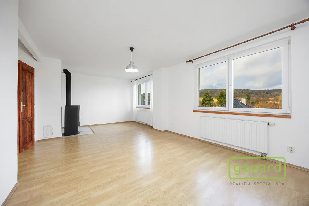 Horní patro nabízí tři pokoje a koupelnu s toaletou. Dispozice umožňuje vytvoření samostatné bytové jednotky. Pokoje mají příjemné západní výhledy směrem na Brdy.
