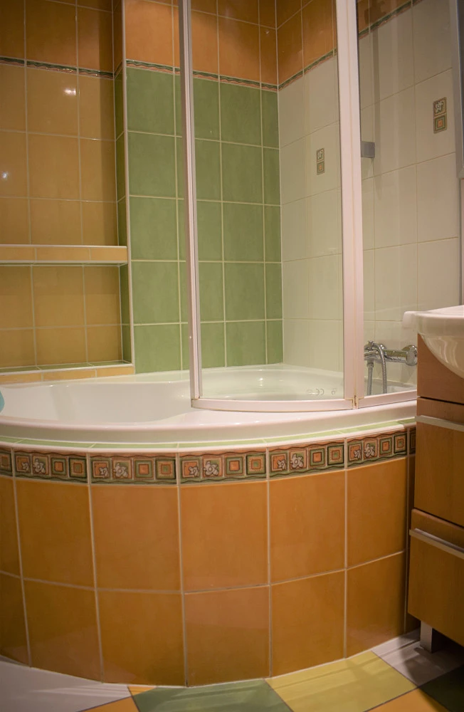 Nadstandardně prostorná chodba s vestavěnou skříní po téměř celé délce vás dovede ke dvěma samostatným pokojům, nacházejících se v levé a pravé části bytu, zcela odděleně. Mezi pokoji je situována koupelna s rohovou vanou se sprchovou zástěnou, umyvadlem, pračkou a WC. Po pravé straně vstupní části bytové jednotky je vzdušný obývací pokoj s plně vybavenou kuchyní, kterou částečně dělí barový pultík, navazující na kuchyňskou linku. Příjemně prosluněná obývací část nabízí i jídelní zákoutí.