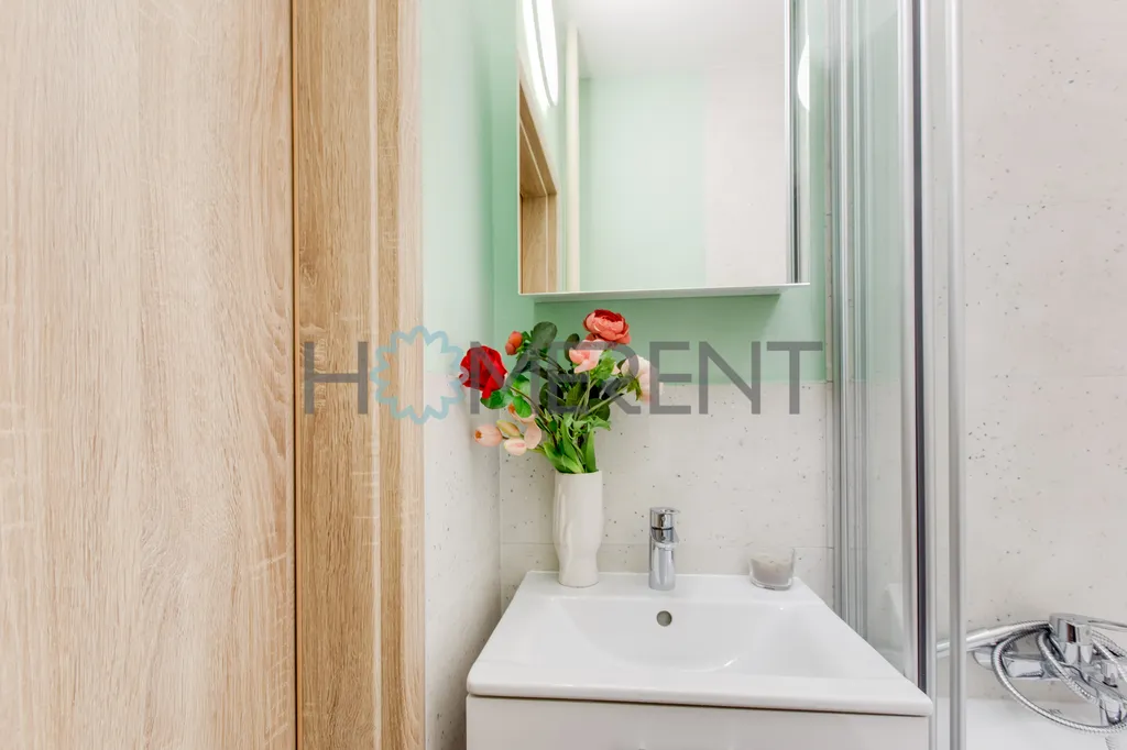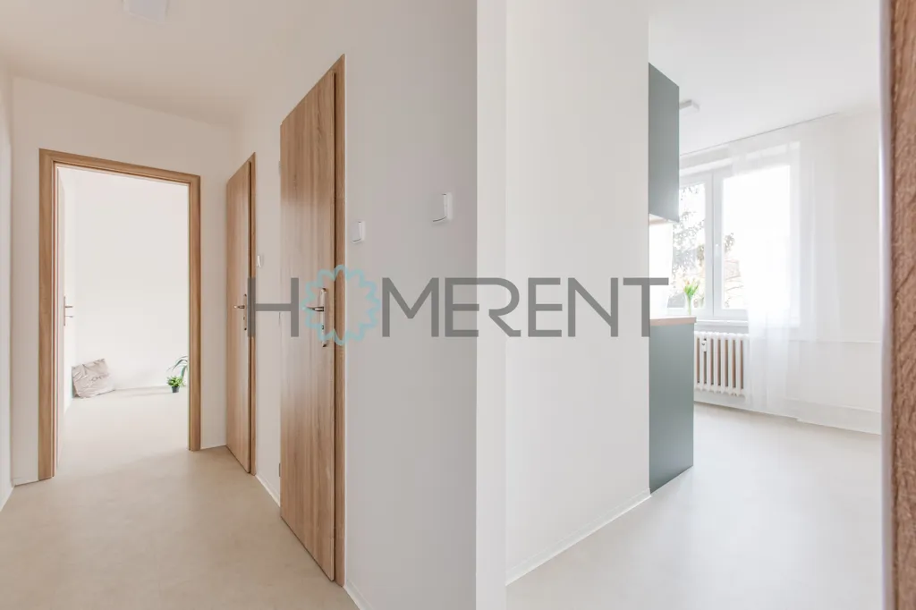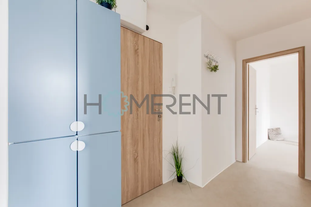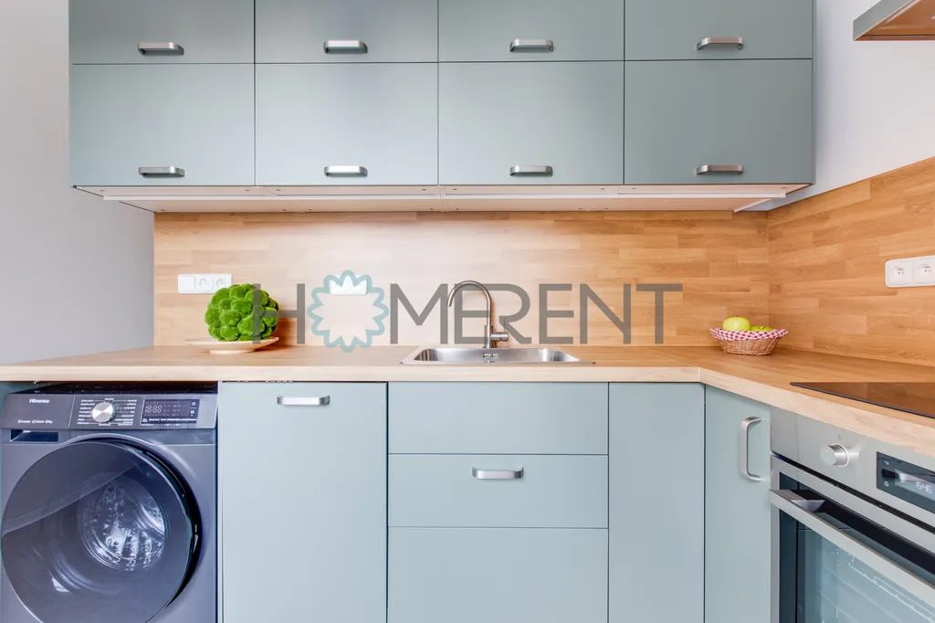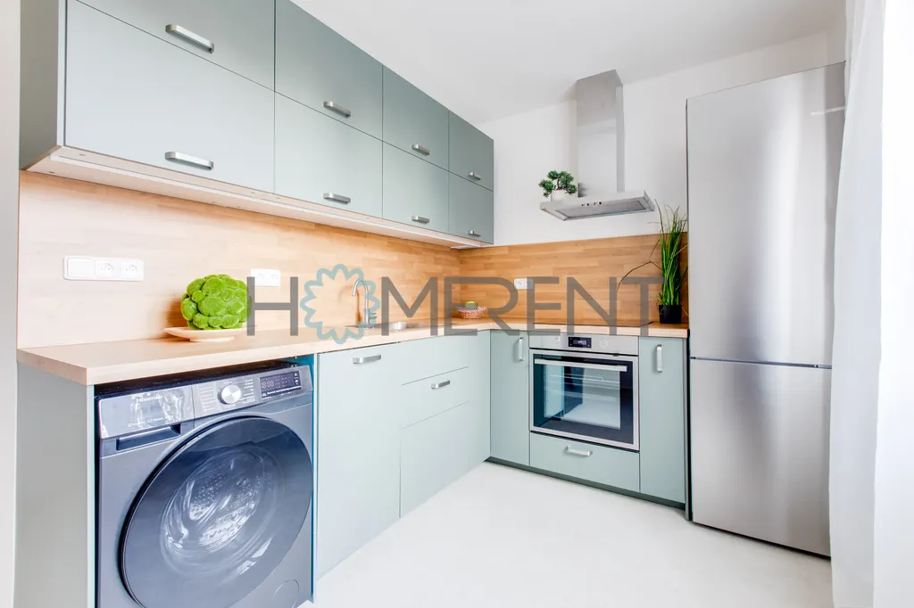Samotný byt prošel kompletní rekonstrukcí. Jsou zde nové podlahy, nová kuchyňská linka a celkově je byt ve velmi dobrém technickém stavu. Byt je pronajímán jako nevybavený, což novým nájemníkům umožňuje zařídit si interiér podle vlastních představ. Součástí bytu je však moderní kuchyňská linka vybavená spotřebiči – k dispozici je lednice s mrazákem, myčka nádobí, digestoř a také pračka se sušičkou. Kuchyň tak nabízí plnohodnotné zázemí pro každodenní vaření i pohodlný chod domácnosti.