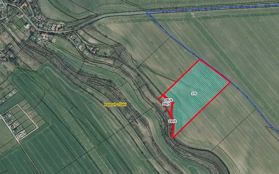 Nabízíme k prodeji soubor pozemků p.č. 175, 191/4, 192/3 a 233/2 o celkové výměře 36 591 m2 v k.ú. Radouň u Štětí, vedený na LV 637. Pozemwk je řádně obhospodařováný místním zemědělcem, který dodržuje osevní postupy. Pozemky jsou tedy vhodné k vlastnímu hospodaření, popřípadě směnu.