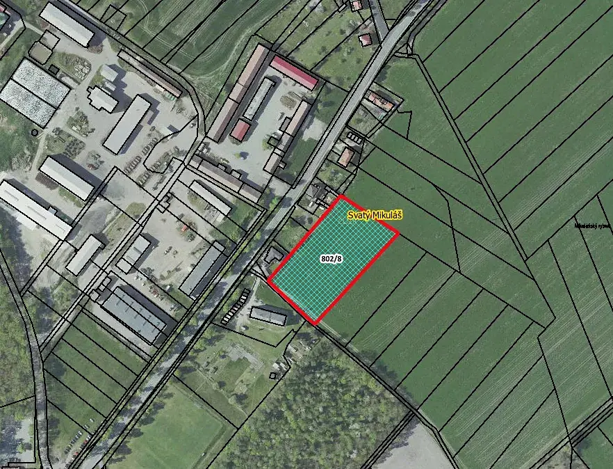 Nabízíme k prodeji 50% podíl na pozemku p.č. 802/8 o celkové výměře 9007 m2 v k.ú. Svatý Mikuláš, vedený na LV 10191. Pozemek přímo sousedí se zastavitelným územím a je na něj přímý přístup z komunikace. Je řádně obhospodařovány místním zemědělcem, který dodržuje osevní postupy. Smlouva je uzavřena na dobu neurčitou. Pozemek je vhodný k vlastnímu hospodaření, popřípadě směnu. Změna ve využití pozemku je možná nejdříve za 3 roky.