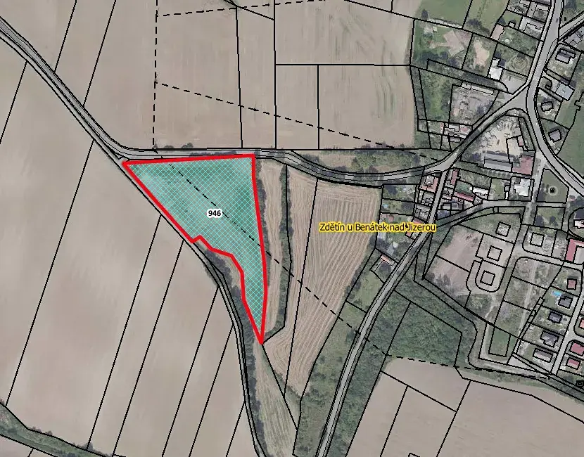 Nabízíme k prodeji pozemek p.č. 946 o celkové výměře 11 949 m2 v k.ú. Zdětín u Benátek nad Jizerou, vedený na LV 199. Pozemek je řádně obhospodařován místním zemědělcem, který dodržuje osevní postupy. Smlouva je uzavřena na dobu neurčitou s výpovědní lhůtou 1 rok. Pozemek je tedy vhodný k vlastnímu hospodaření, popřípadě směnu.