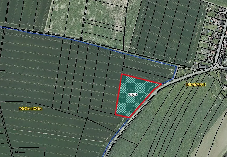 Nabízíme k prodeji pozemek p.č. 129/25 o celkové výměře 7 209m2 v k.ú. Bořetice u Kolína, vedený na LV 716. Pozemek je řádně obhospodařován místním zemědělcem, který dodržuje osevní postupy. Smlouva je uzavřena na dobu neurčitou s výpovědní lhůtou 1 rok. Pozemek je tedy vhodný k vlastnímu hospodaření jako zahrada, popřípadě směnu.