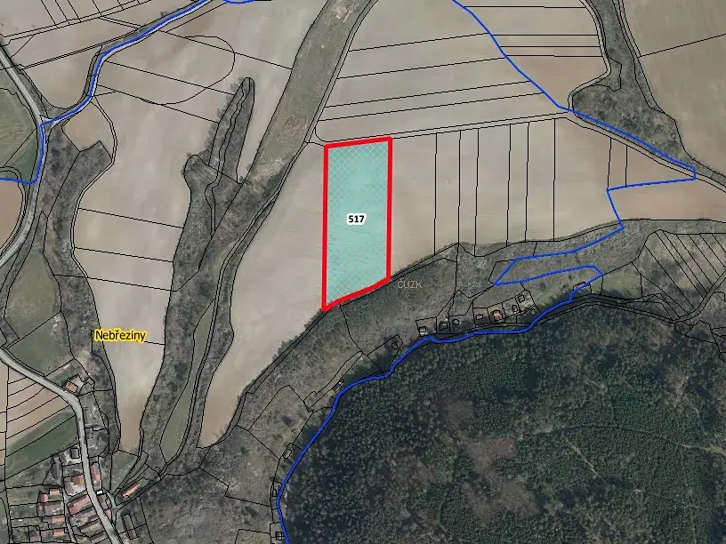 Nabízíme k prodeji pozemek p.č. 517 o celkové výměře 15 326 m2 v k.ú. Nebřeziny, vedené na LV 1388. Pozemky jsou řádně obhospodařovány místním zemědělcem, který dodržuje osevní postupy. Smlouva je uzavřena na dobu neurčitou s výpovědní lhůtou 1 rok. Pozemky jsou tedy vhodné k vlastnímu hospodaření, popřípadě směnu.