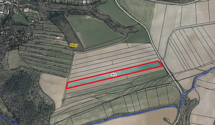 Nabízíme k prodeji pozemek p.č. 671 o celkové výměře 15 688 m2 v k.ú. Plasy, vedené na LV 1390. Pozemky jsou řádně obhospodařovány místním zemědělcem, který dodržuje osevní postupy. Smlouva je uzavřena na dobu neurčitou s výpovědní lhůtou 1 rok. Pozemky jsou tedy vhodné k vlastnímu hospodaření, popřípadě směnu.