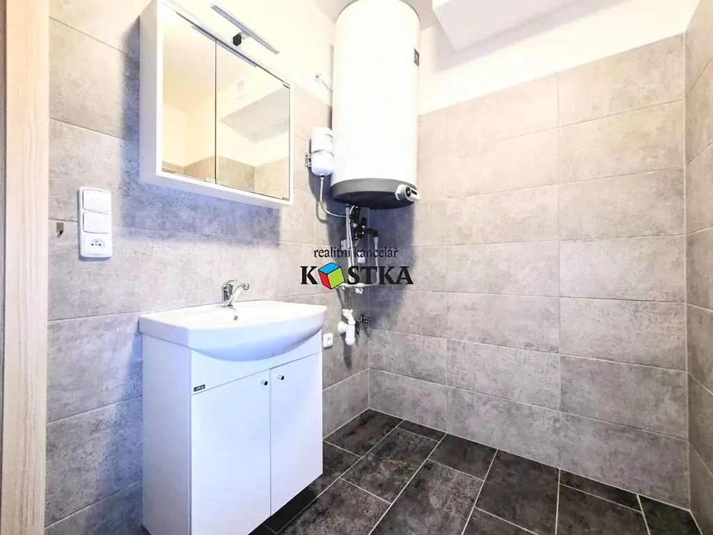 Byt v prvním patře domu. V kuchyni najdete kuchyňskou linku vybavenou vestavěnými spotřebiči (indukční varná deska, el. trouba, myčka nádobí). Koupelna je osazena sprchovým koutem, umyvadlem a toaletou.