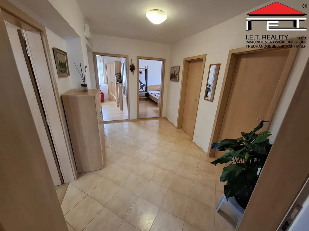 Byt je vybavený samostatnou kuchyní s jídelním stolem, linkou s vestavěnou myčkou, plynovým sporákem a lednicí s mrazákem. Samostatná toaleta je s bidetem. Prostorná koupelna nabízí jak vanu tak i sprchový kout, dvojité umyvadlo, topný žebřík na ručníky. Byt dále nabízí 3 neprůchozí samostatné pokoje a obývací pokoj, dále chodbu a zádveří s vestavěnou skříní. Bezpečnostní vstupní dveře, izolační dřevěná okna s dvojskly. Topení v celém objektu je zajištěno plynovým kotlem v kombinaci s tepelným čerpadlem.