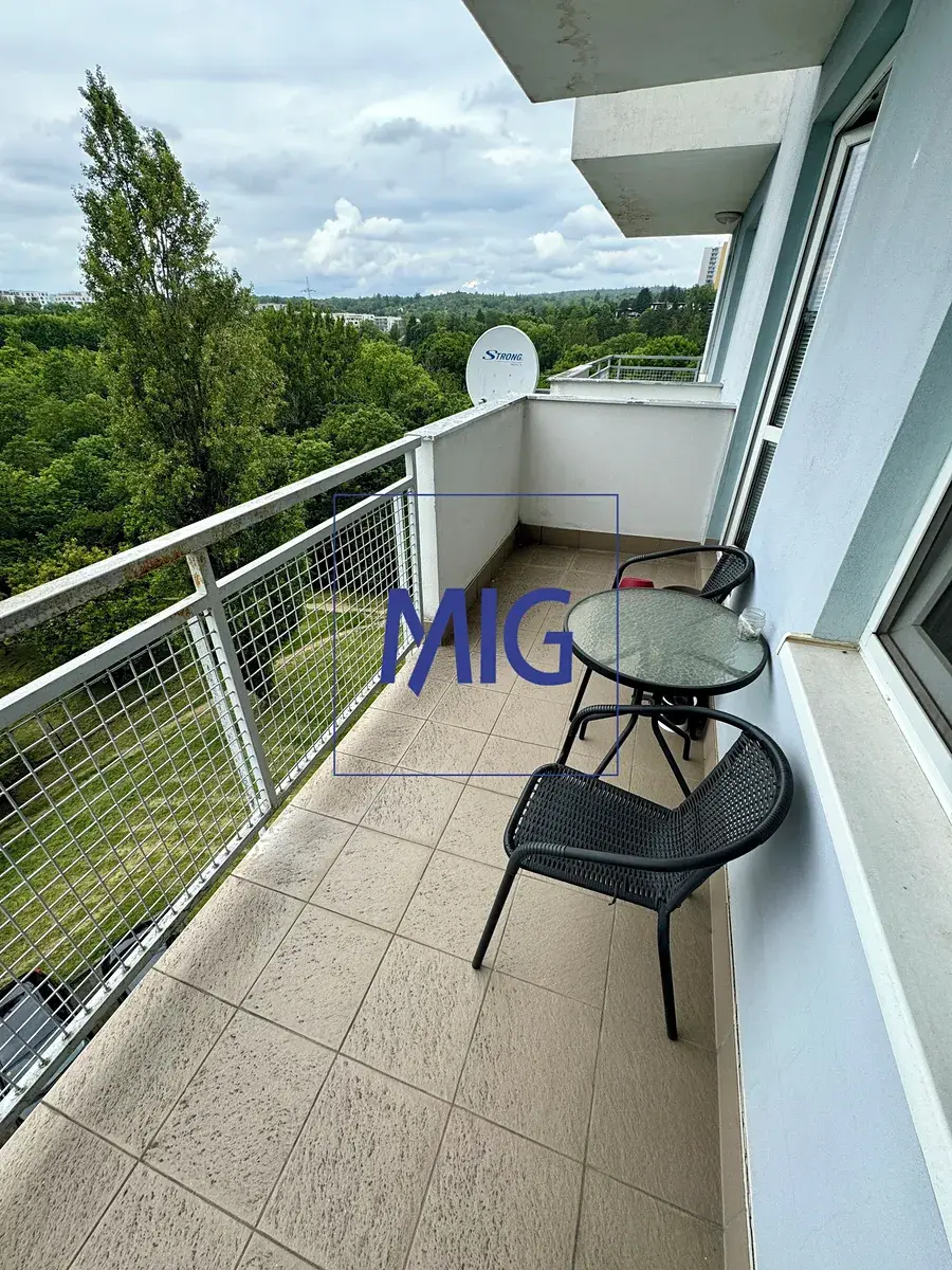 Velkou výhodou bytu je samostatná šatna, která poskytuje dostatek úložného prostoru. Byt je orientovaný na západ a z balkonu nabízí příjemný výhled na Brno a okolní zeleň.