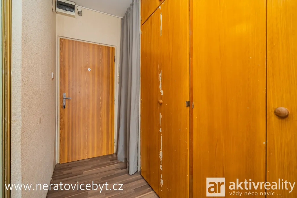 Po vstupu se nachází chodba s vestavěnou šatní skříní, která nabízí dostatek úložného prostoru. Z chodby je vstup do koupelny se sprchovým koutem a toaletou. Dále je zde samostatný pokoj s chytrým řešením vestavěné skříně, která zároveň slouží jako dveře do místnosti a šetří tak prostor. Hlavní obytnou část tvoří obývací pokoj se vstupem na lodžii, která příjemně rozšiřuje obytný prostor. Na obývací pokoj navazuje kuchyně. K bytu náleží také komora umístěná na chodbě domu a sklepní kóje.
