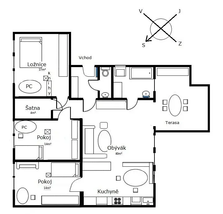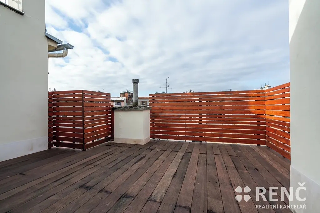 K prodeji nabízíme prostorný světlý byt o dispozici 4+kk s terasou, který se nachází ve 4. patře (5. NP) zděného bytového domu na ul. Erbenova na úpatí čtvrti Černá Pole. Součástí bytu je velká vstupní předsíň se šatní skříní, hlavní obytný prostor s kuchyní, jídelnou a vstupem na terasu, vše orientováno do vnitrobloku. Byt má rovněž tři samostatné ložnice a šatnu, koupelnu s velkým oknem a vanou a samostatné WC. Celková podlahová plocha bytu je 102 m2, terasa navazující na obývací pokoj má dalších 19 m2. Plocha hlavního obytného prostoru je 42 m2, předsíň má výměru 4,2 m2, koupelna 6 m2, šatna 4 m2 a tři ložnice se střešními okny a zkosenými stropy mají výměry 18 m2, 13 m2 a 12 m2. Byt je orientován jihovýchodním a severozápadním směrem a je díky své poloze velmi dobře osvětlen. Za domem ve vnitrobloku je uzavřená společná zahrada, kterou lze využívat k odpočinku a posezení. V přízemí domu je menší místnost pro uložení kol a kočárků. K bytu lze koupit rovněž garáž v domě a využívat tak i další stání před garáží. Byt byl postaven a kolaudován v roce 2008 jako půdní vestavba ve střeše funkcionalistického bytového domu z roku 1934. Byt je vybaven kuchyňskou linkou včetně sklokeramické varné desky, elektrické trouby a myčky. V hlavním obytném prostoru je klimatizační jednotka. Vytápění bytu a ohřev vody zajištuje vlastní plynový kotel umístěný v koupelně. Bytová jednotka má z části dřevěná eurookna včetně předokenních rolet, z části střešní okna Fakro včetně venkovních clon. Střecha nad bytem má keramickou a plechovou krytinu, krov je dřevěný, veškeré hlavní konstrukce jsou z roku 2008. Vnitřní stěny bytu jsou z části zděné a z části sádrokartonové. Podlaha v obývacím pokoji dřevěná, v ložnicích lamino, keramická dlažba v předsíni, koupelně a na WC. V září 2025 proběhla generální oprava terasy včetně nové hydroizolace, nášlapná vrstva je nově z odolného cedrového dřeva. Měsíční zálohové platby za služby spojené s užíváním bytu (voda, fond oprav, společné výdaje domu) činí 2.987 Kč. Nad rámec této platby je hrazena spotřeba plynu pro ohřev vody a vytápění bytu ve výši 2.000 Kč a spotřeba elektřiny ve výši 1.300 Kč, celkem tedy činí měsíční náklady za užívání bytu 6.300 Kč. K bytu nabízíme ke koupi i garáž jako samostatná jednotka za cenu 2.000.000 Kč, která je umístěná v domě, díky nájezdu před garáží je tak možné zaparkovat další automobil. V okolí domu jsou veřejná parkovací místa – modré zóny kategorie C, pro rezidenty za roční poplatek 800 Kč. Prvorepublikový bytový dům prošel opravami společných částí, včetně vstupu obloženého z části mramorem, dům má nové vstupní dveře, novou fasádu, nové vedení páteřních instalací v domě, zahrada je udržovaná, v domě funguje velmi dobře SVJ. Dům je situován na úpatí Černých Polí, cca 100 m od parku Lužánky, v okolí je veškerá občanská vybavenost, do centra města je možné dojít během 10-ti minut přes park pěšky. V případě zájmu o prohlídku nás prosím kontaktujte. Nemovitost je možné použít jako zástavu v případě financování koupě prostřednictvím úvěru.
