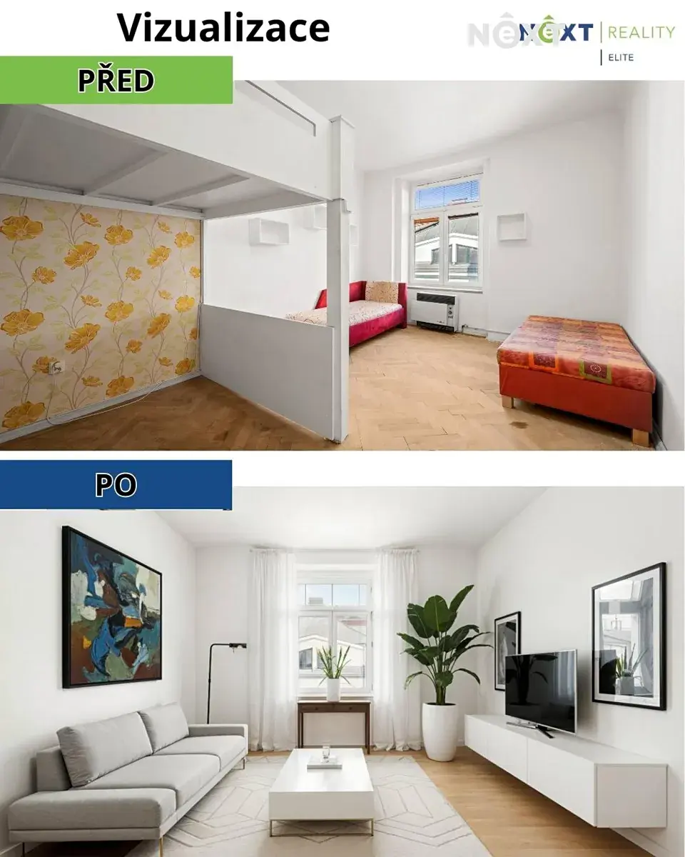 Byt je v původním stavu, což novému majiteli poskytuje ideální možnost upravit si interiér přesně podle vlastních představ a vytvořit tak moderní městské bydlení s jedinečnou atmosférou.