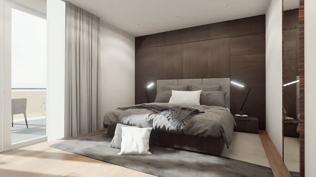 Byt je navržen jako 3+kk s terasou 24 m2 a dvěma balkony přístupnými z obou pokojů. Byt je situován přes celé podlaží a je navržen tak, aby měl dostatek úložných prostor a poskytoval světlost, vzdušnost a terasa poskytovala slunný koutek k odpočinku.