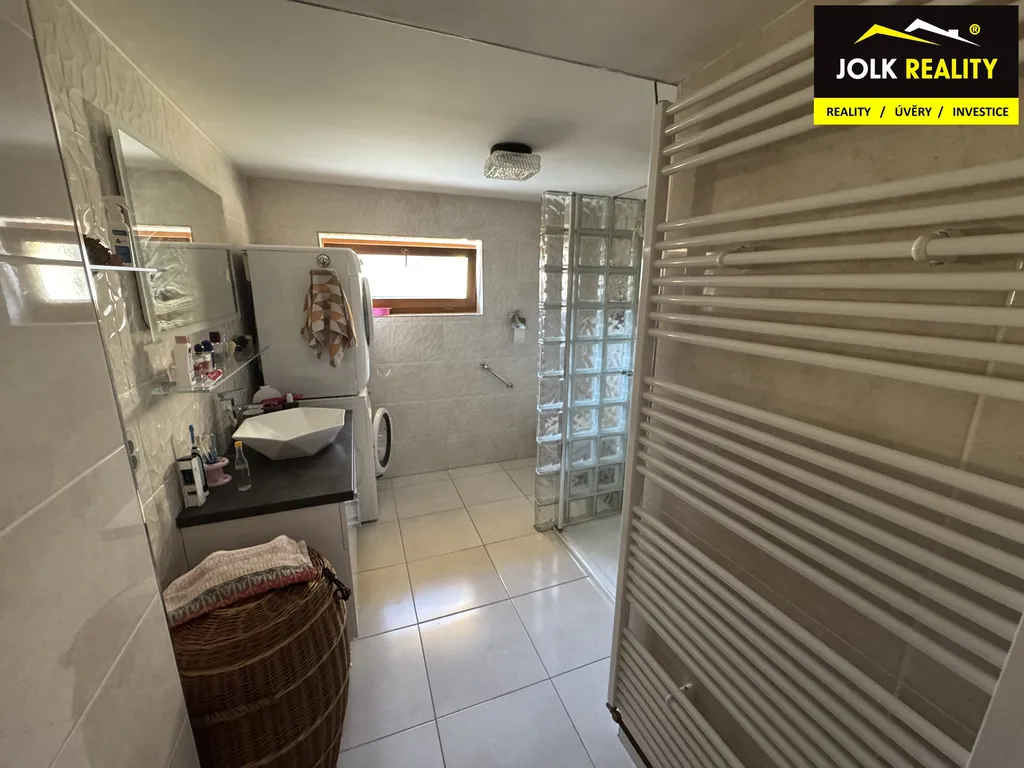 V přízemí se dále na pravé straně chodby nachází technická místnost. Na druhé straně chodby směrem od vstupu je obývací pokoj za kterým je prostorná kuchyně. Za kuchyní je pak přes zastřešený prostor vstup na zahradu, což oceníte zejména při posezení s rodinou nebo přáteli. Na konci chodby se nachází nově zrekonstruovaná koupelna s prostorným sprchovým koutem.