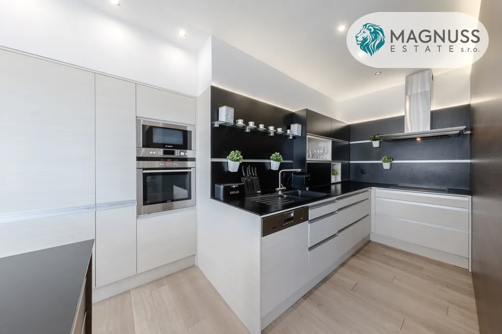 Byt je vybaven kuchyňskou linkou včetně spotřebičů, podlahy jsou kombinací vinylu a keramické dlažby. Vytápění i ohřev vody jsou řešeny dálkovým zdrojem. Dům je vybaven výtahem a je ve velmi dobrém technickém stavu.