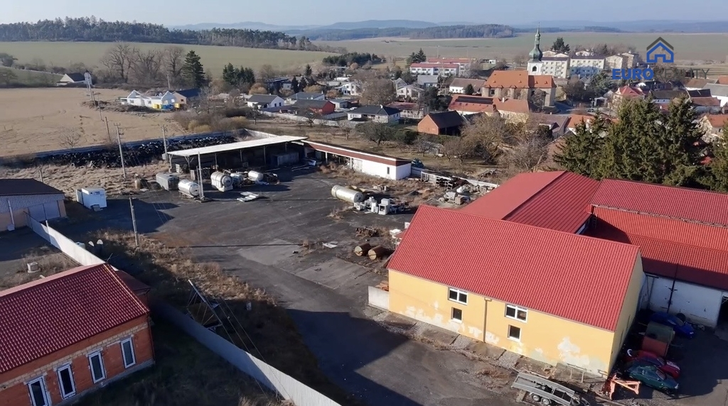 Prodej výrobního a skladovacího areálu v sousedství letiště Erpužice. Prodává se areál o celkové ploše 10 996m2 a několik výrobních a skladovacích hal o výměře 1 400m2 o výšce 8,5m a druhá je nižší 7m s vraty 4,5m, garáž 26m2.