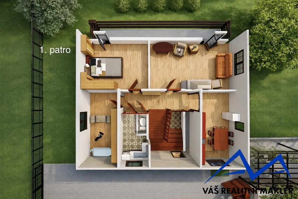 Dům je ve velmi dobrém technickém stavu a je vhodný k modernizaci dle představ nových majitelů. Přiložené vizualizace ukazují možný budoucí potenciál úprav interiéru.