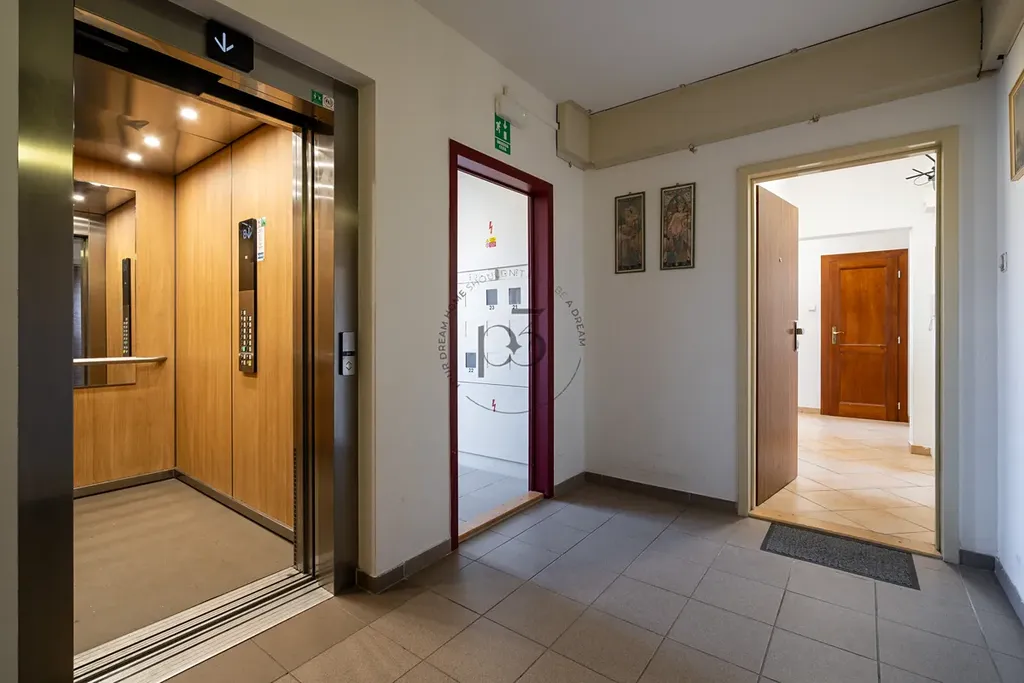 Byt se nachází v osmém patře s výhledem na Prahu a Pražský hrad. Byt je situován na východní i západní stranu.